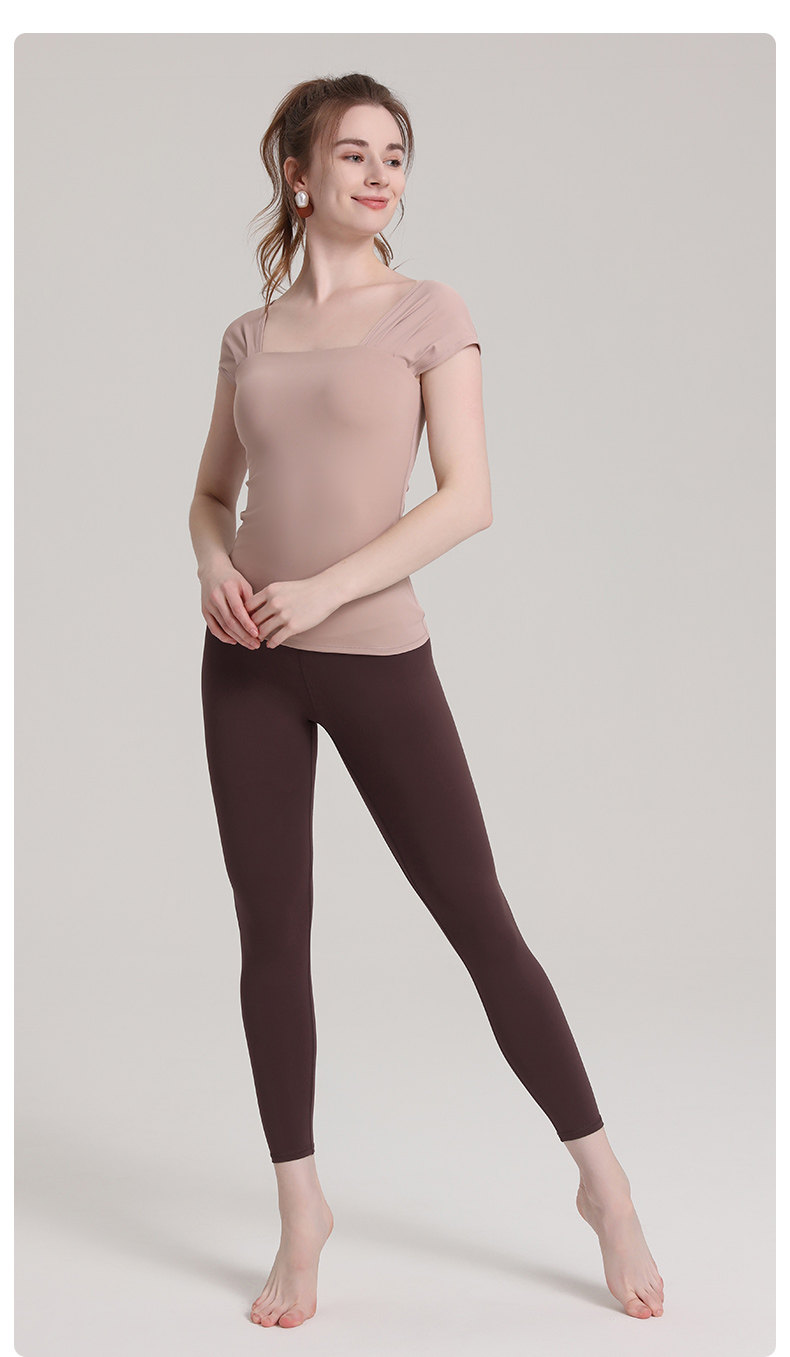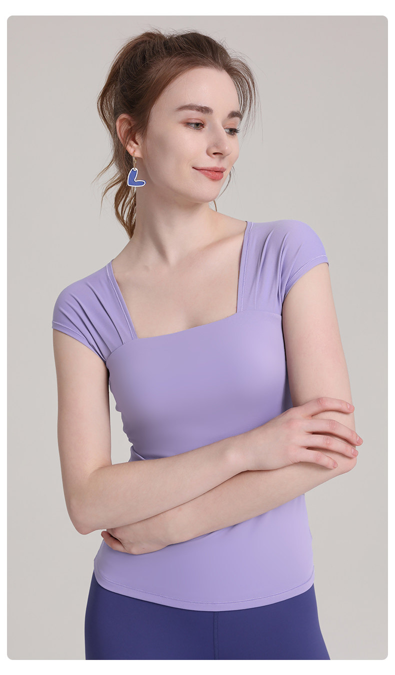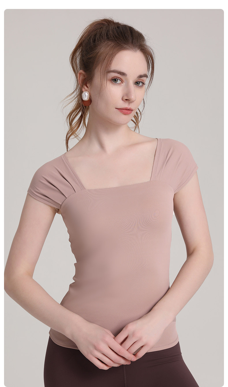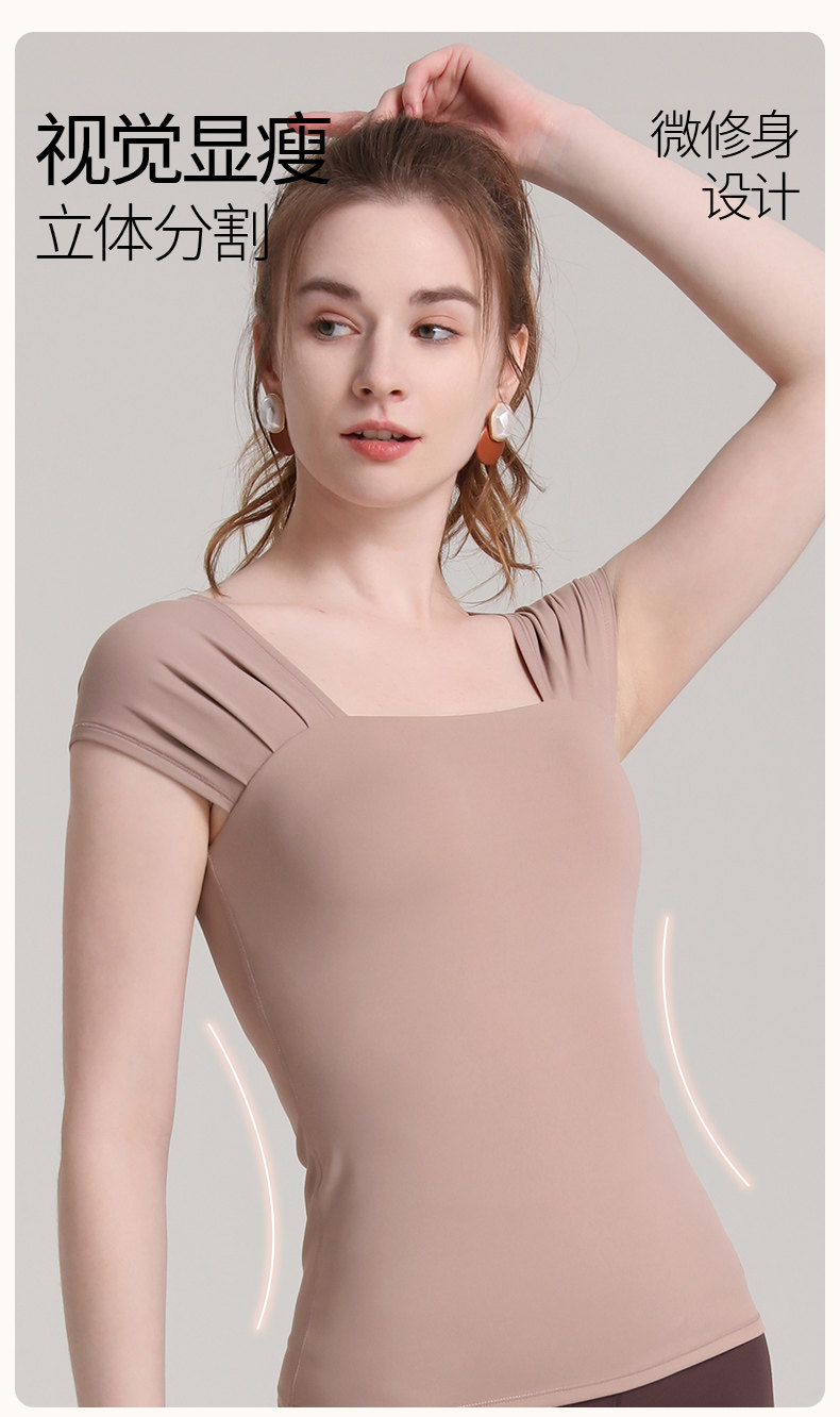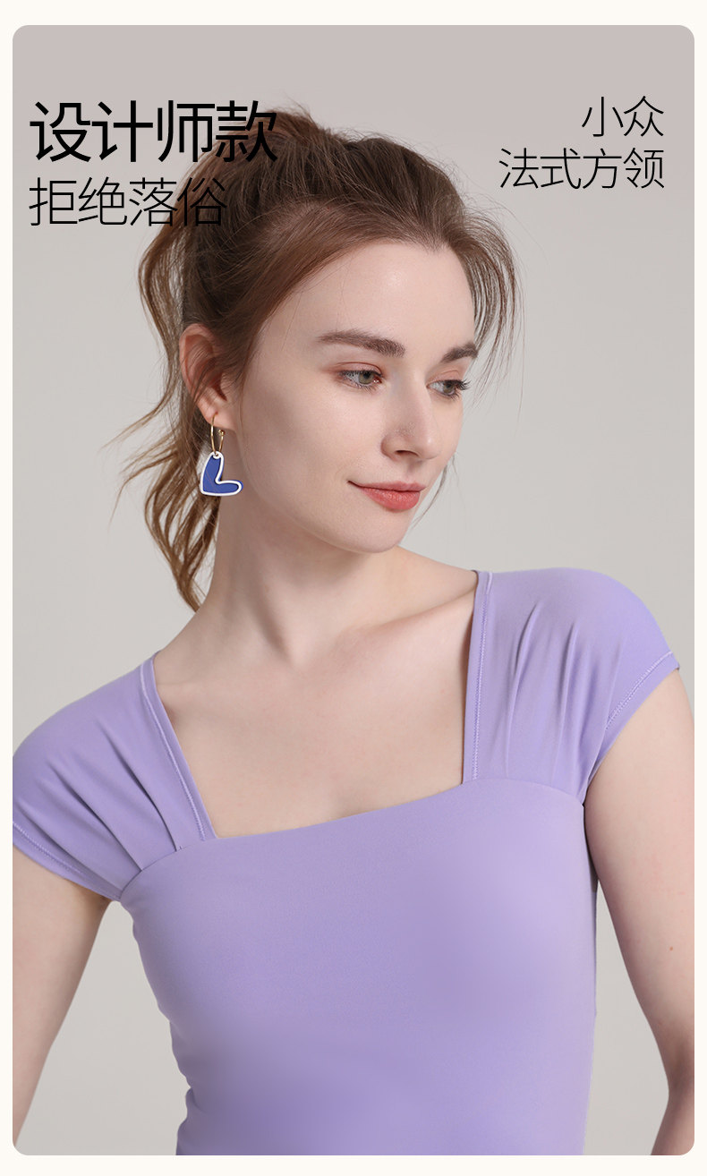 Vanmei Professional Yoga Wear Tops Women's 2025 Autumn New T-shirt French Square Tie Chest Pad Yoga Short Sleeves