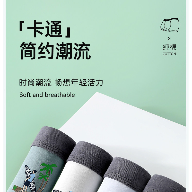 Men's underwear, boys' pure cotton antibacterial boxer briefs, boys' breathable youth boxer shorts, summer thin section