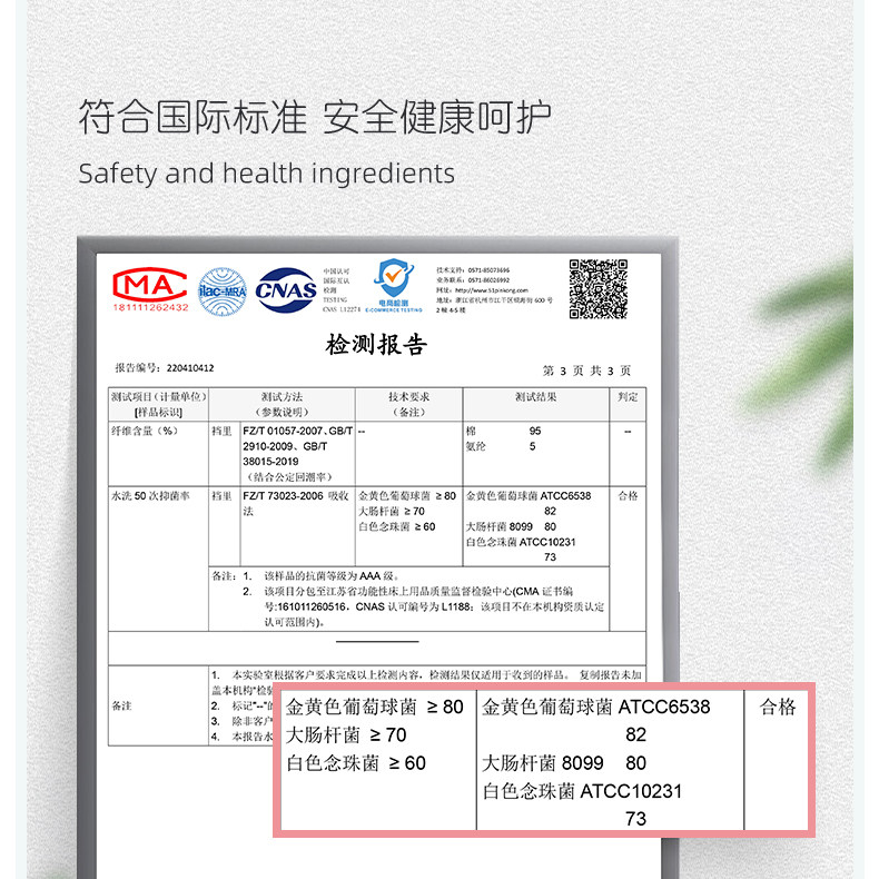 Crotch material composition Cotton 95% polyurethane elastic fiber (spandex) 5%