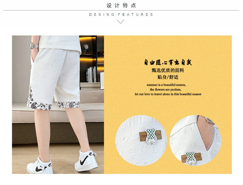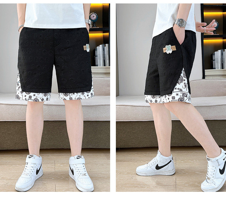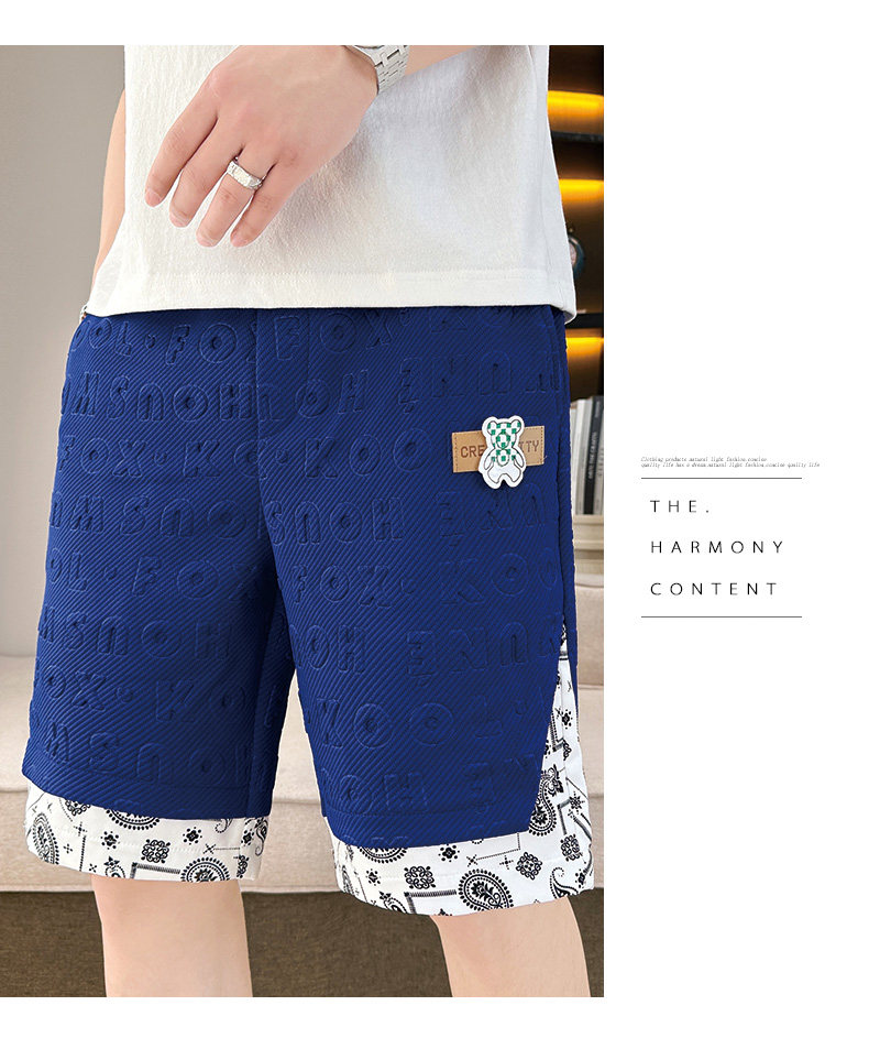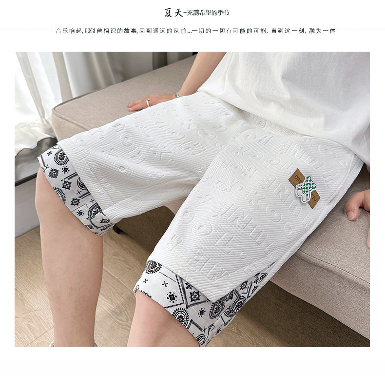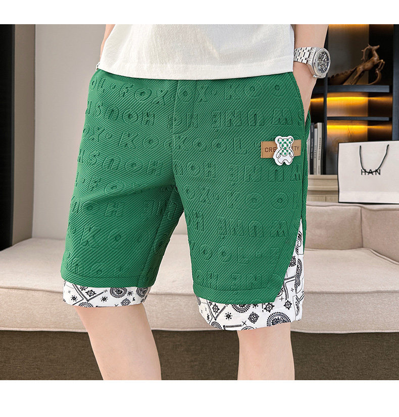 Waffle Knit Shorts for Men, Stylish Summer Thin Letter-Embossed Five-Point Shorts, Trendy Loose Large Shorts for Men