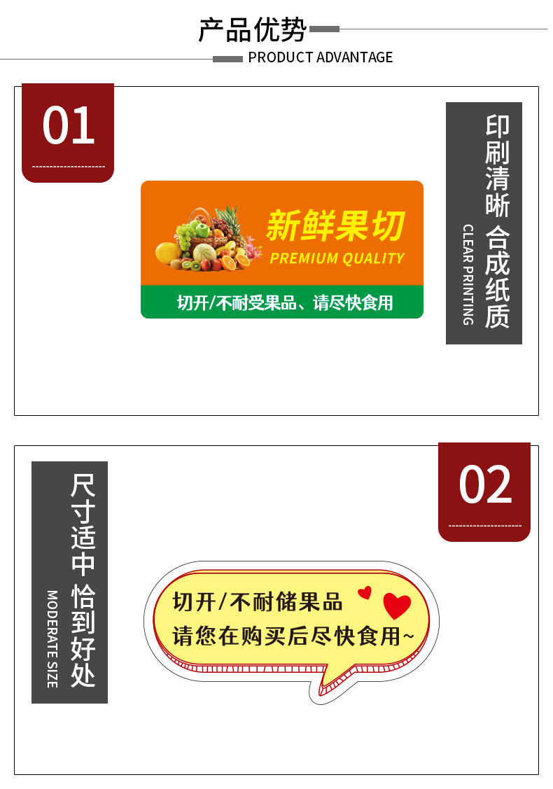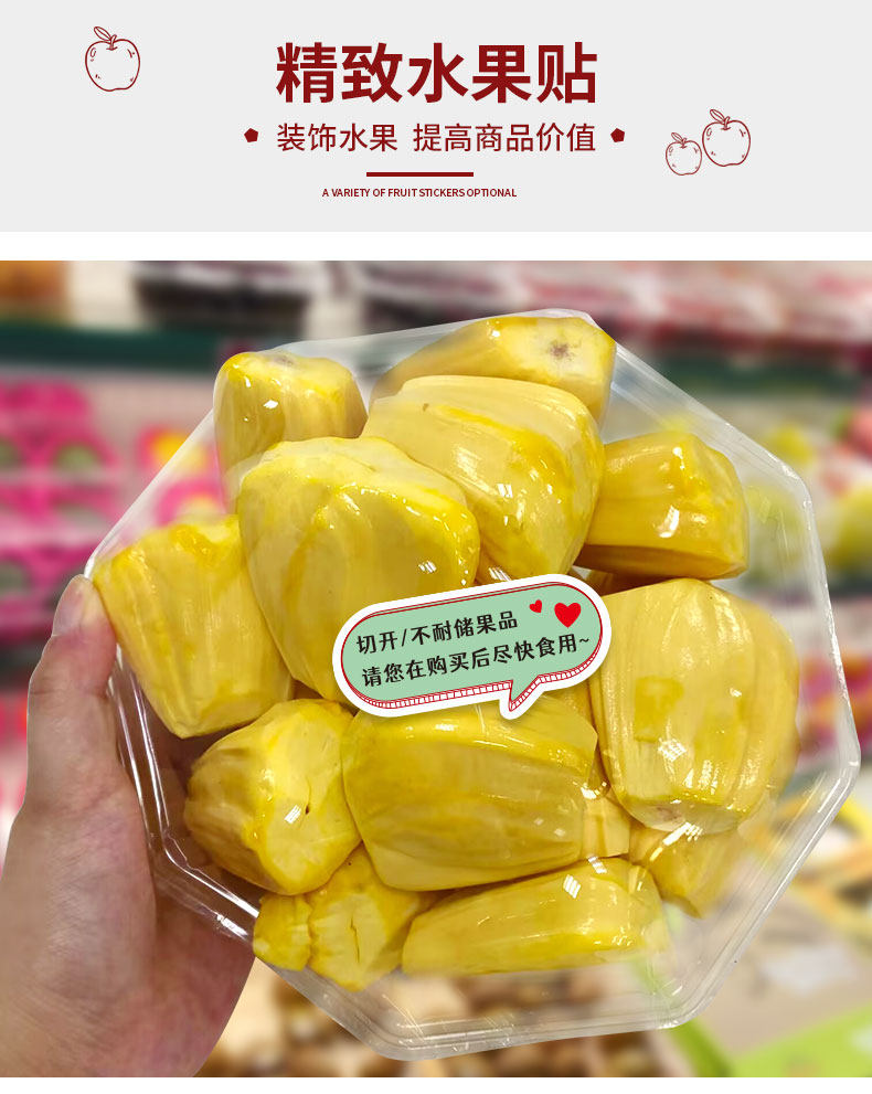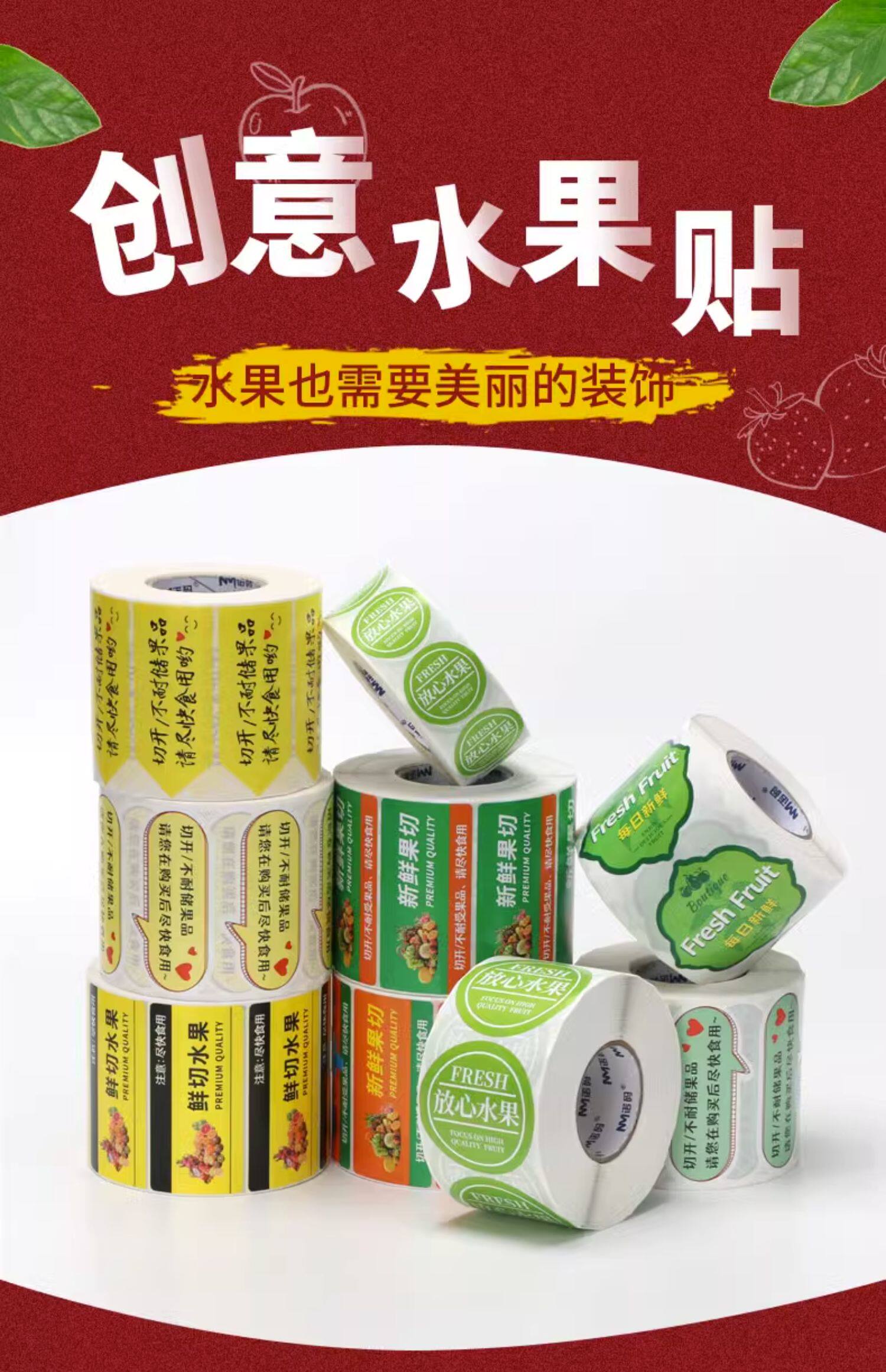 Fruit Cut-Out Adhesive Labels, Fruit Takeout Packaging Boxes, Daily Fresh and Safe Fruit Strips, Fruit Seal Stickers, Waterproof Tear-Resistant Fruit Shop Plastic Box Platter Label Paper Promotion