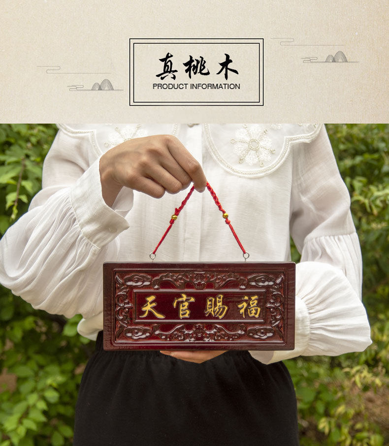 Peach Wood Tian Guan Ci Fu Plaque Door Sticker Horizontal Version for Buildings, Living Rooms, Home Decorations, Entrance Door, Door-To-Door Decoration