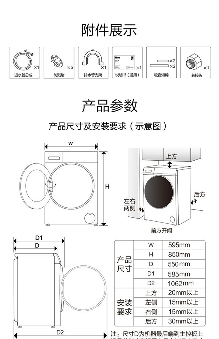 Haier Xqg100-Bd14376Lu1 Essence Wash Level 1 Direct Drive Inverter Household Fully Automatic Washing Machine