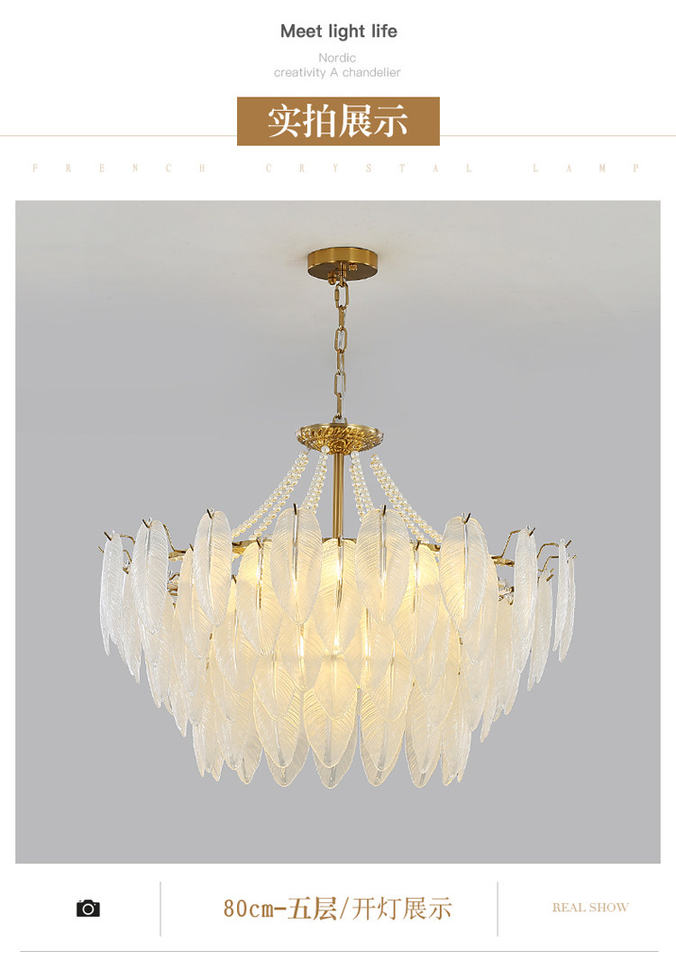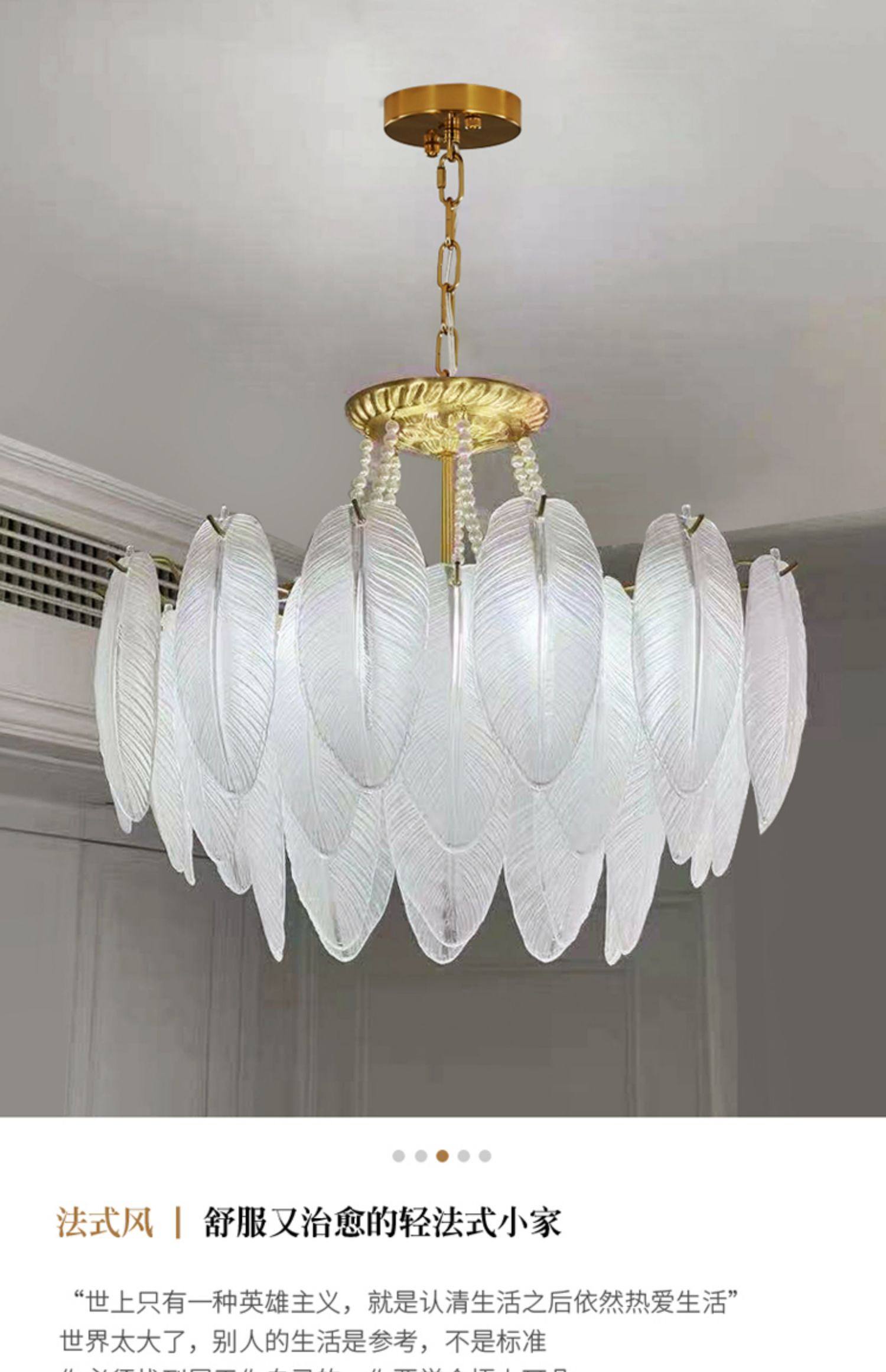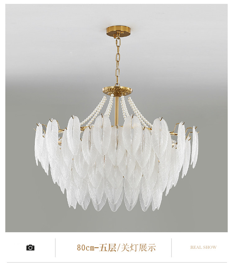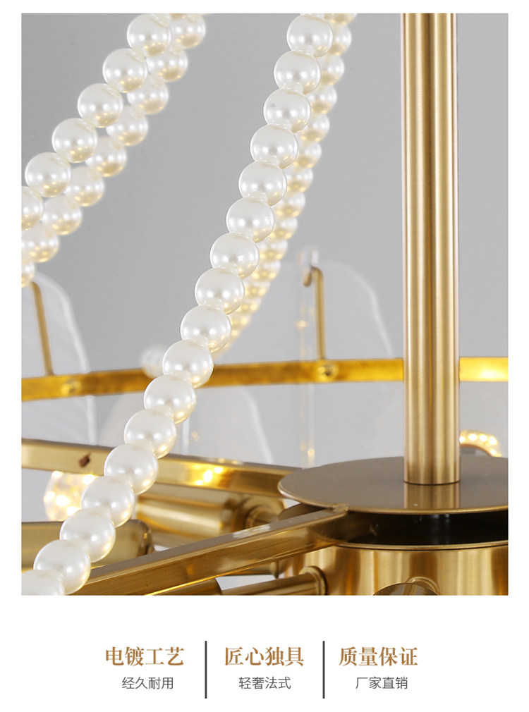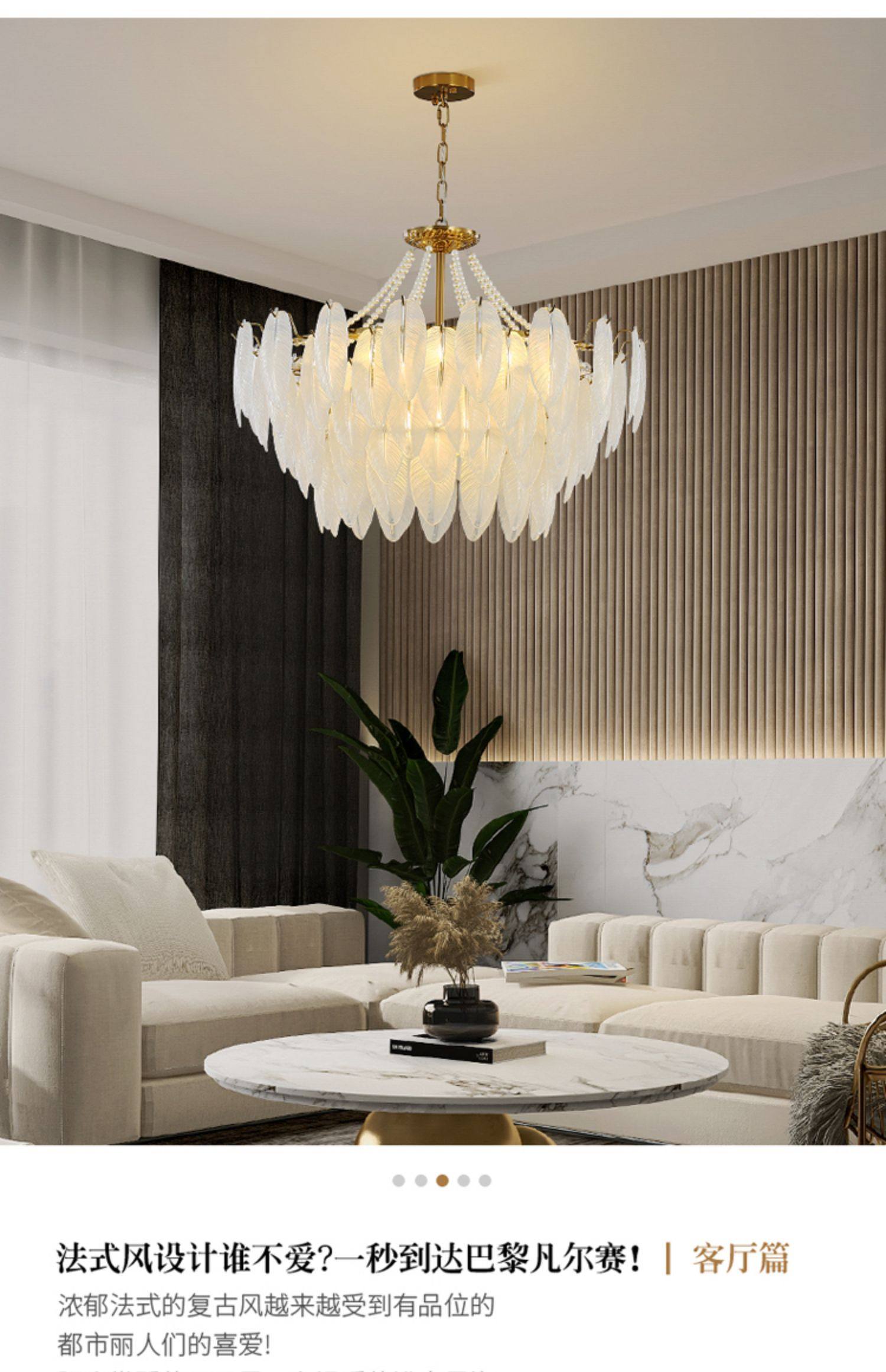 French-Style Cream Chandelier with Pearls ins Internet Celebrity Creative Crystal Light Luxury Feather Post-Modern Living Room Bedroom Lighting Fixtures