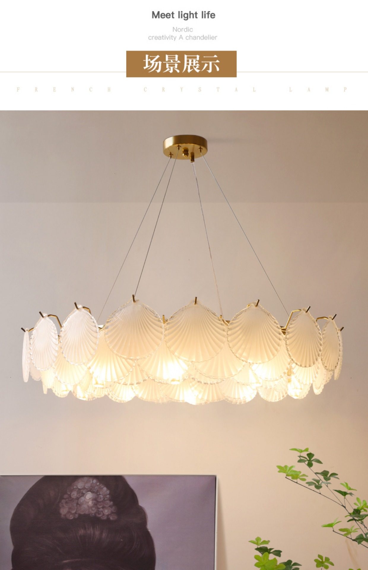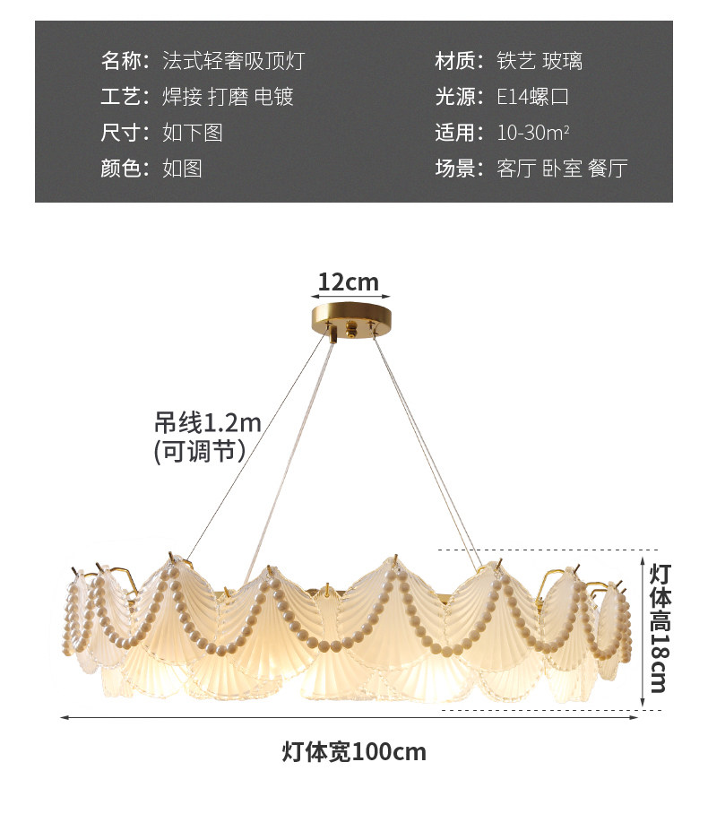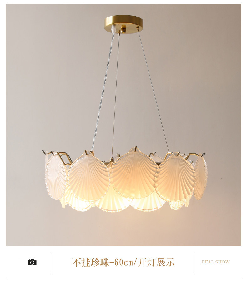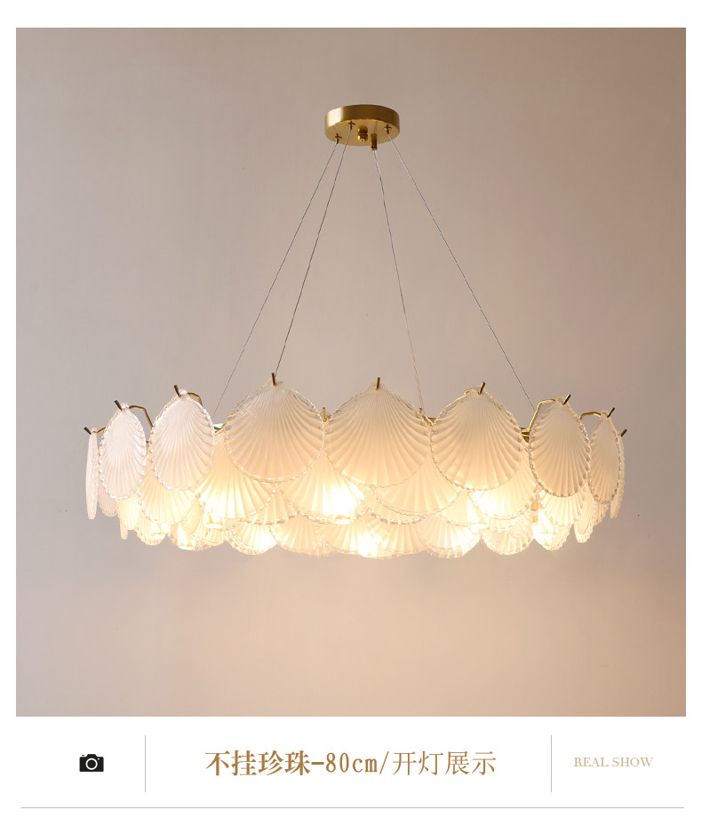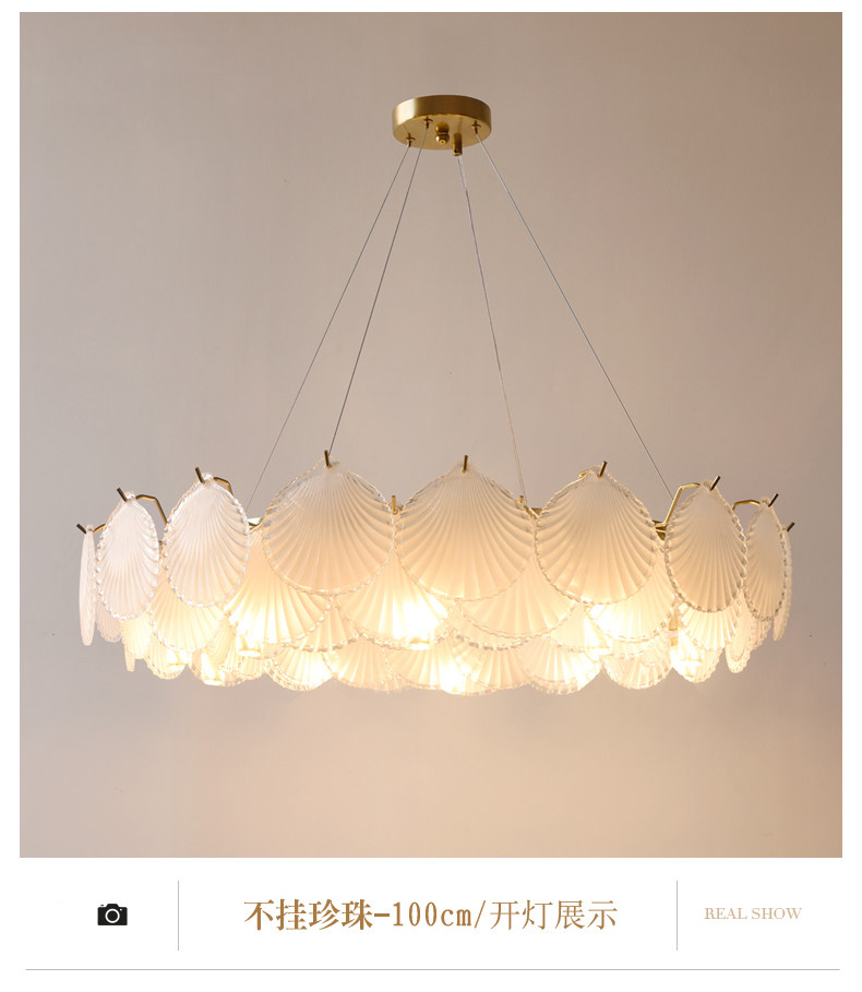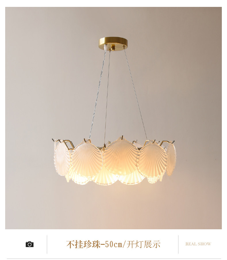 French-Style Light Luxury Living Room Chandelier, Master Bedroom Dining Room Trendy Modern Minimalist Crystal Shell Lighting Fixture, 2025 New Model