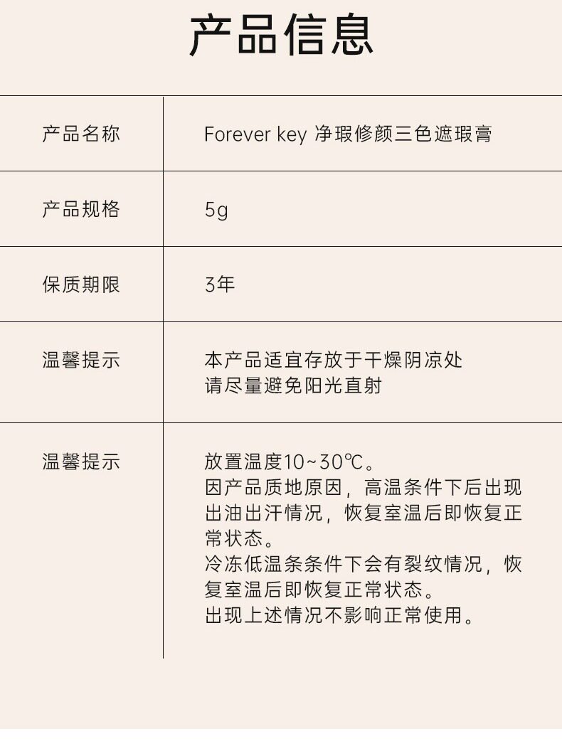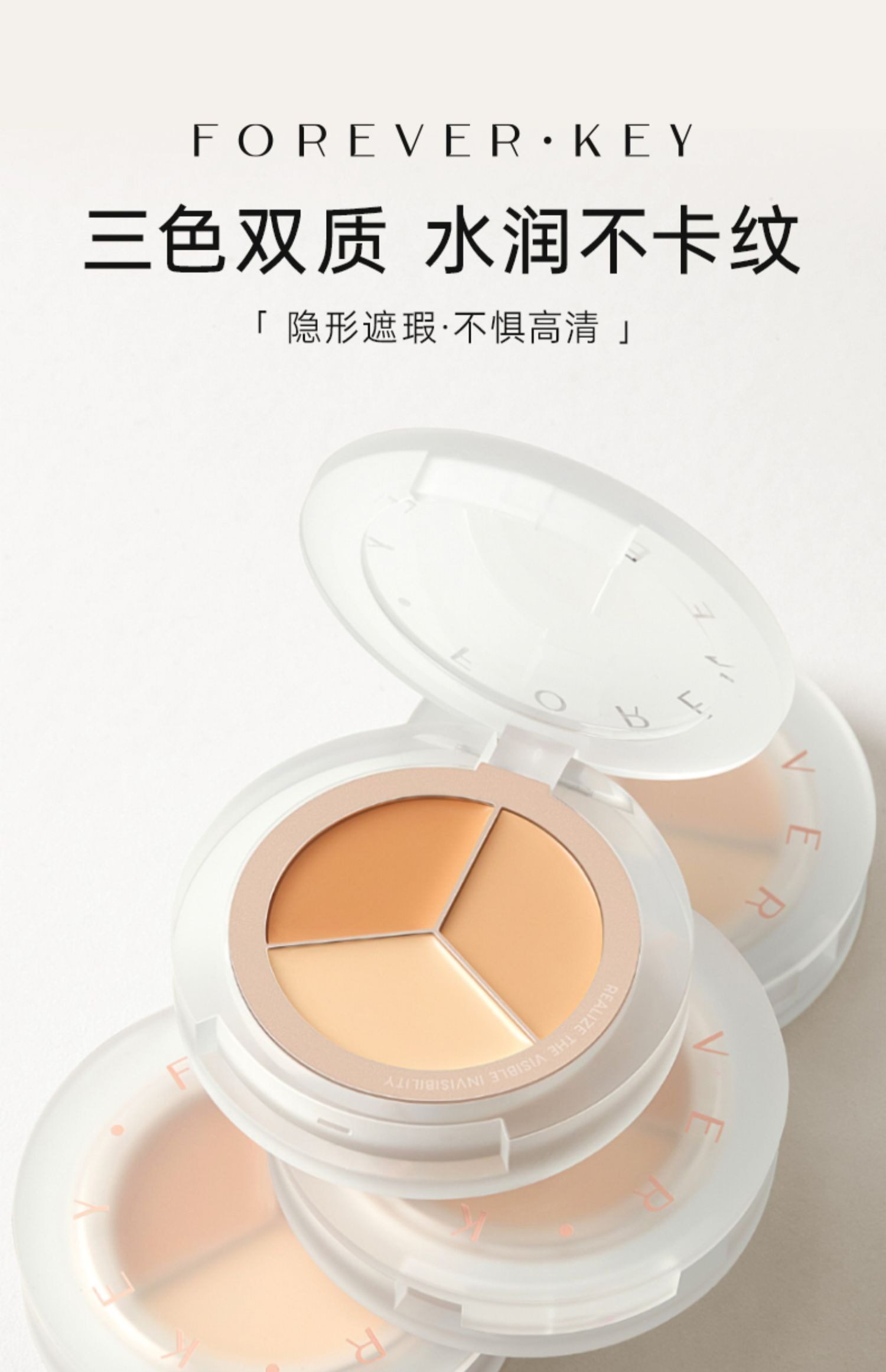 Foreverkey Concealer Covers Spots, Facial Acne Marks, Dark Circles, Three-Color Concealer Palette, Official Authentic Product, Nasolabial Folds