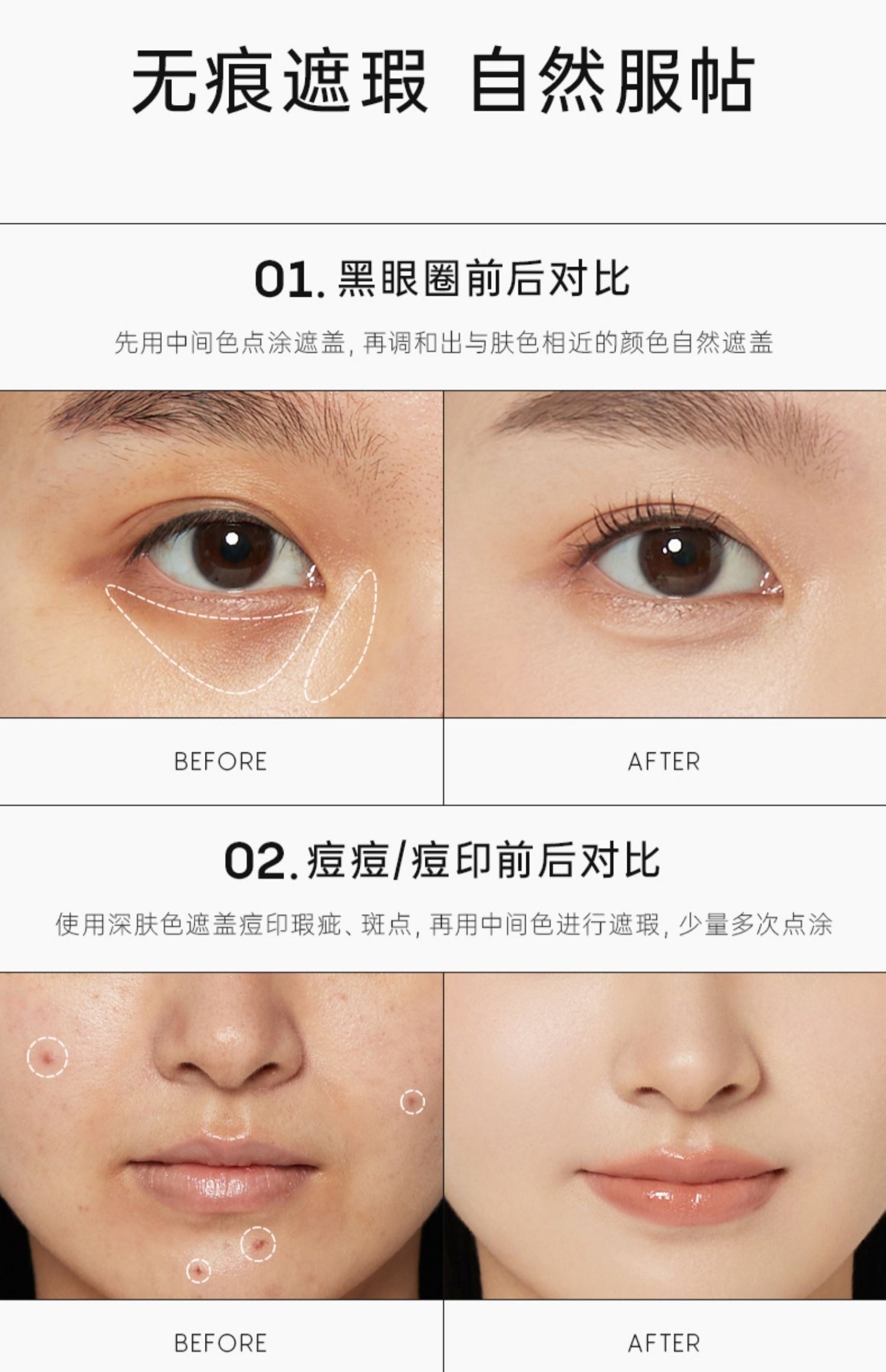 Concealer Area Covers Color Spots, Freckles, Dark Circles, and Acne Marks