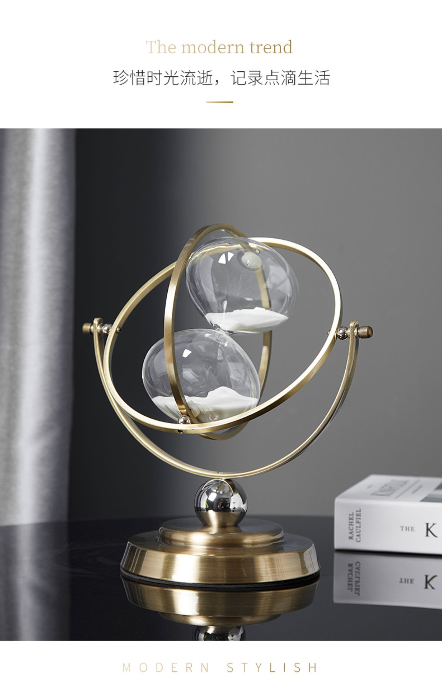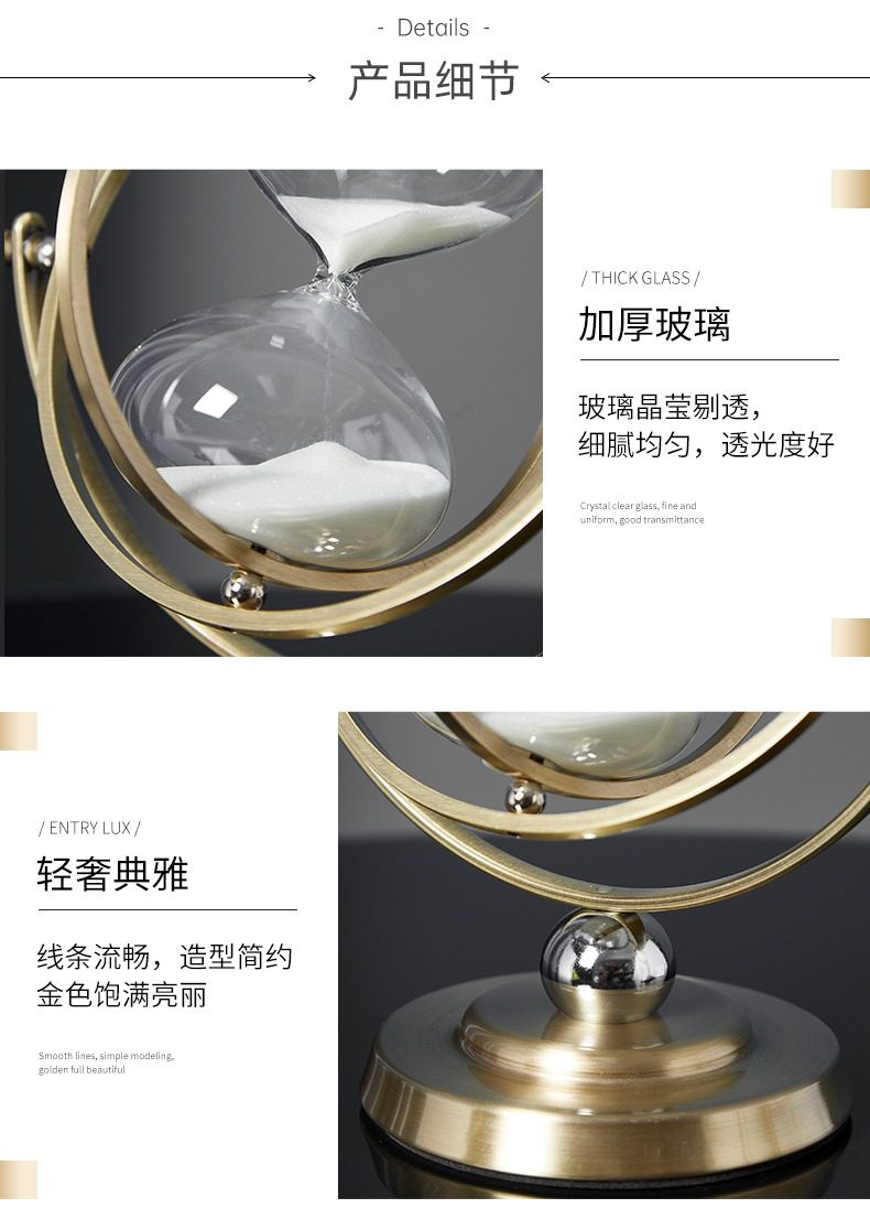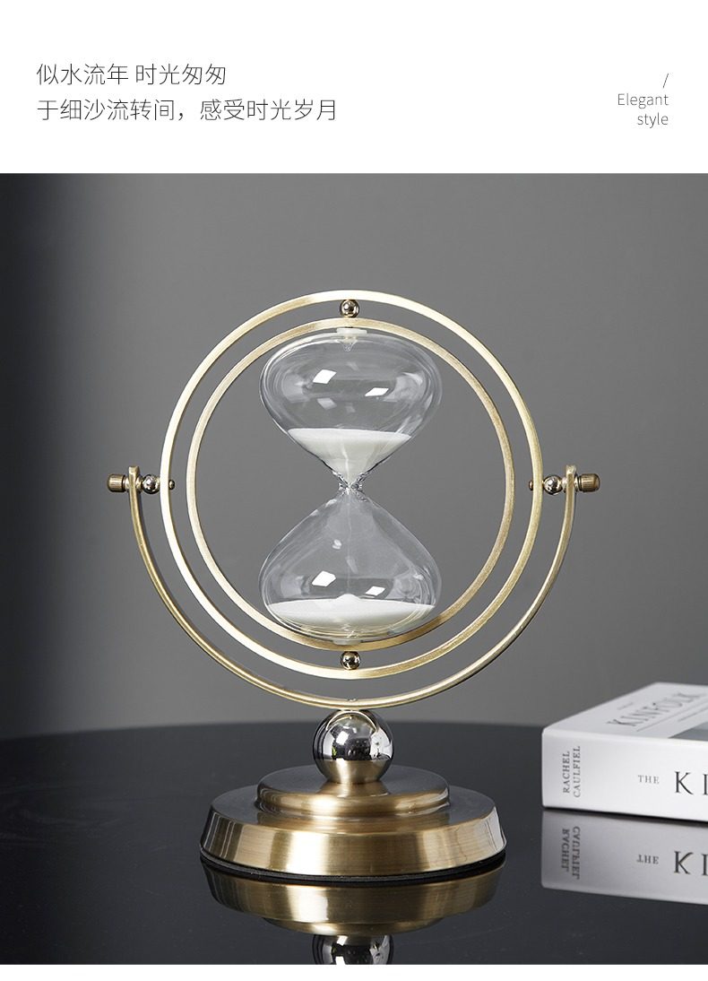 Creative Rotatable Globe Hourglass Timer 30 Minutes Ornament Modern Light Luxury Office Desktop Decoration