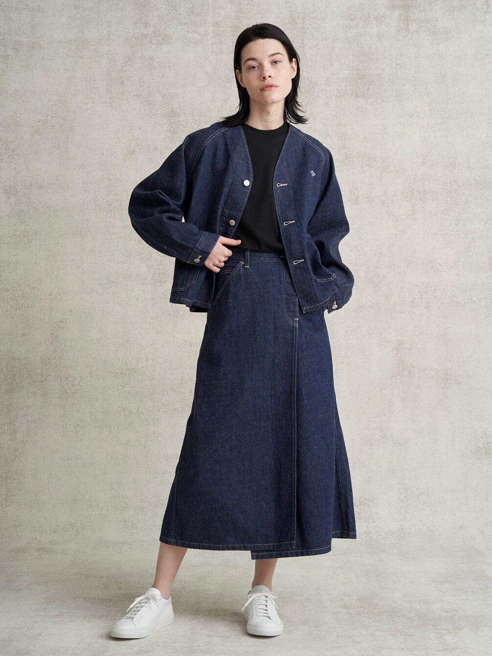 Japanese Trendy Brand Spring and Summer Retro Asymmetrical One-Piece Elastic Waist Women's Denim A-Line Skirt Danton