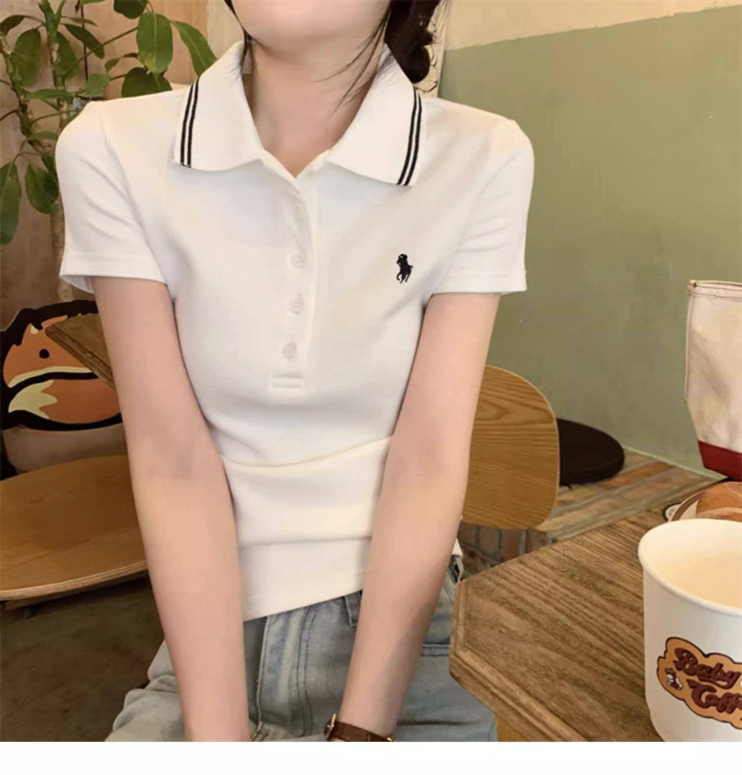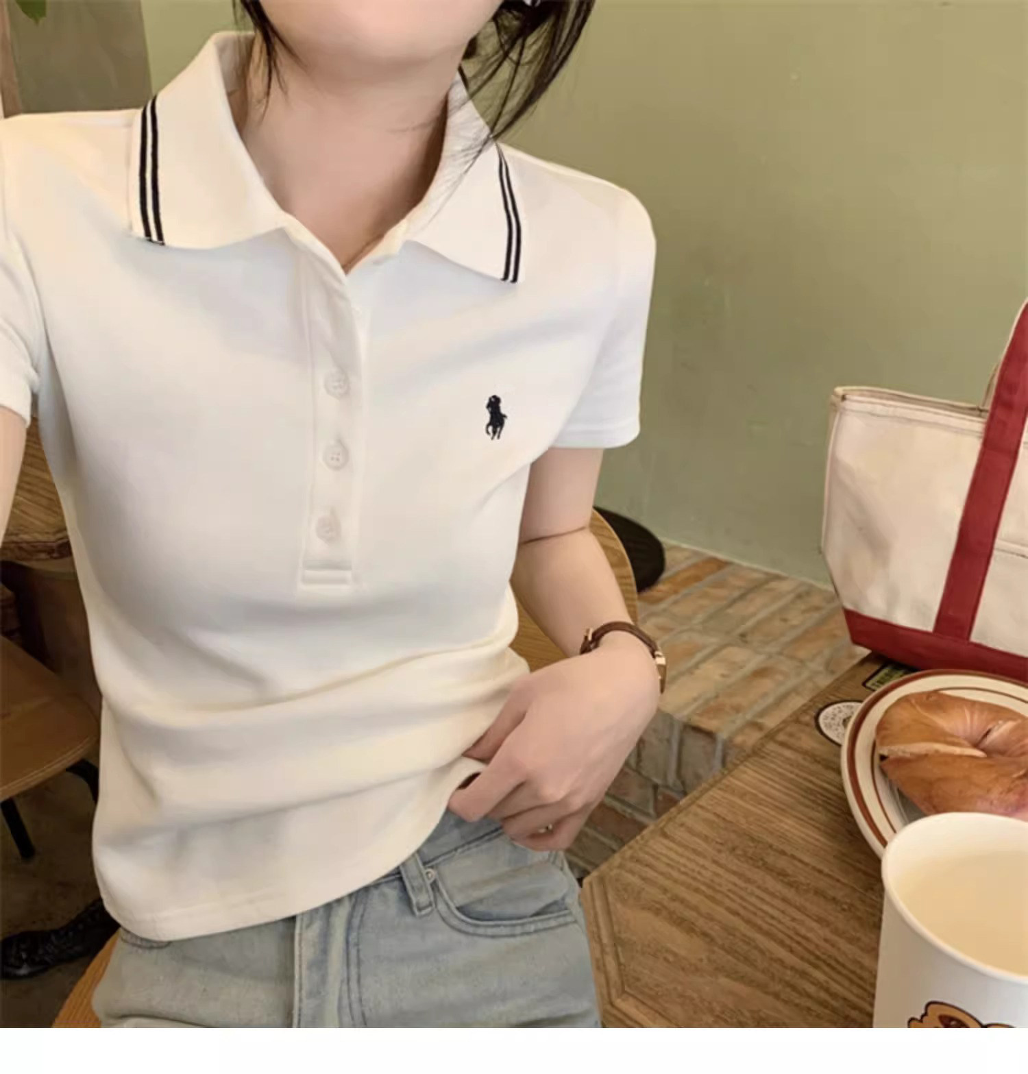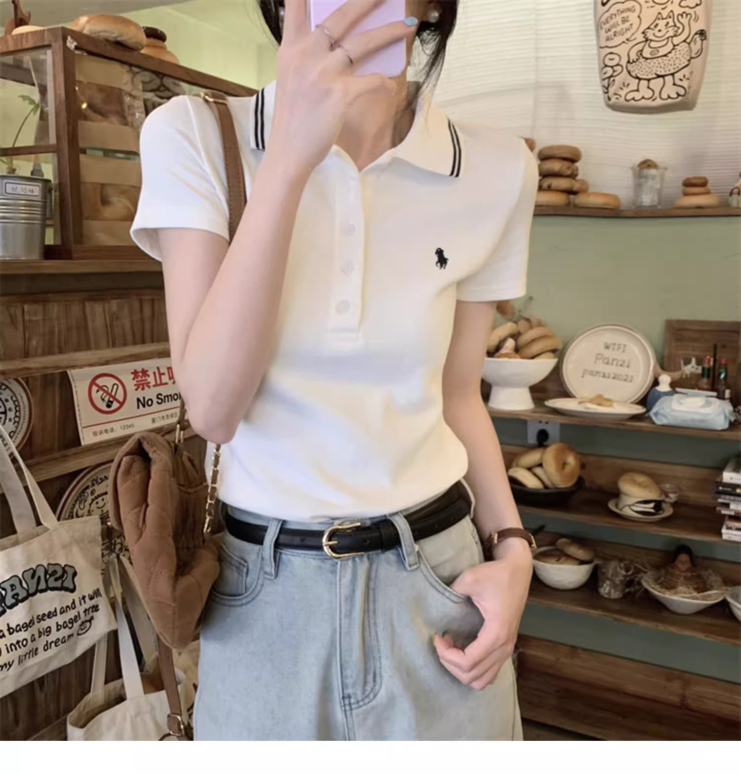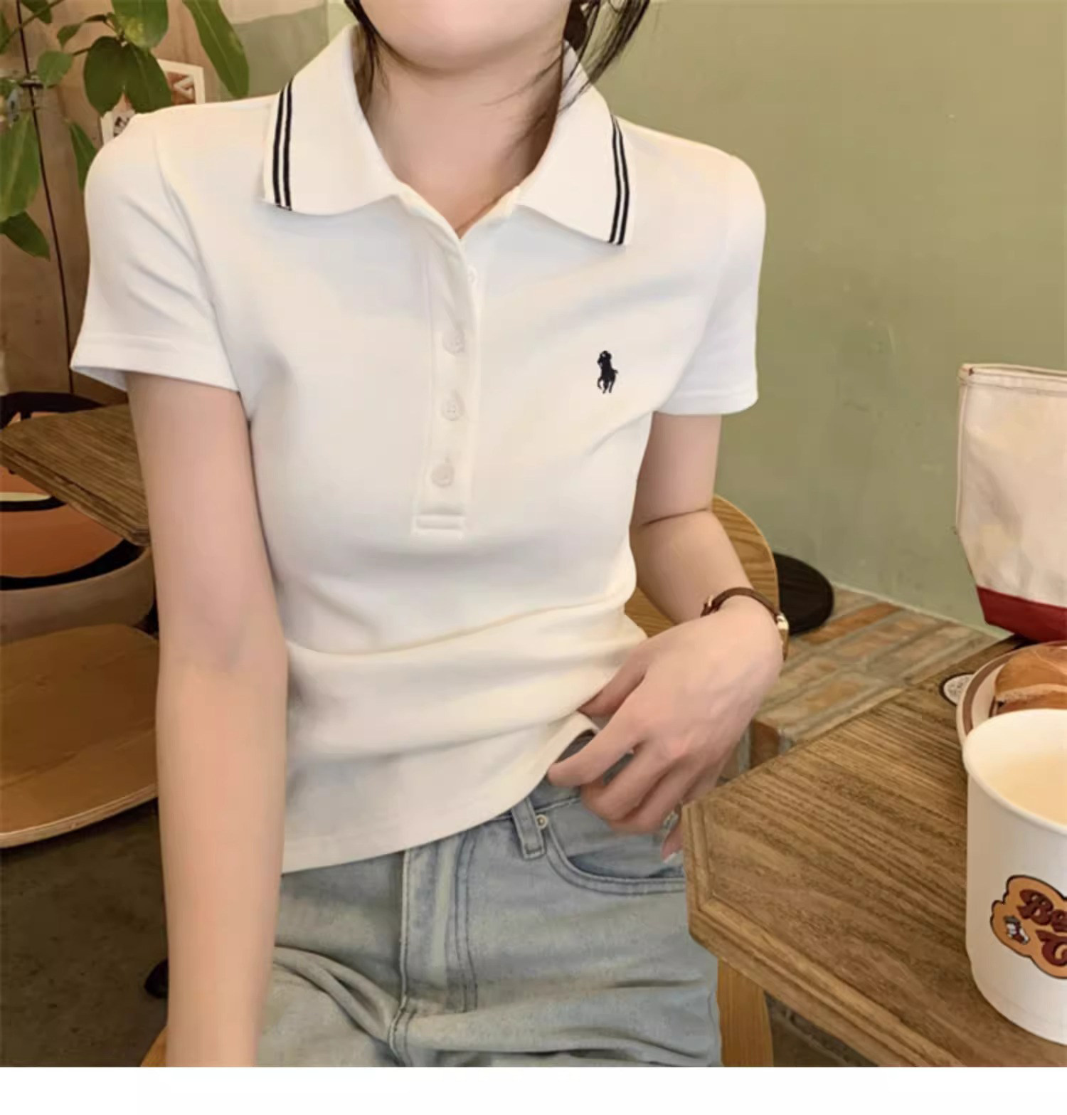 Summer American-Style Embroidered White Short-Sleeve T-Shirt for Women, Unique Design, Trendy Slim-Fit Polo Shirt