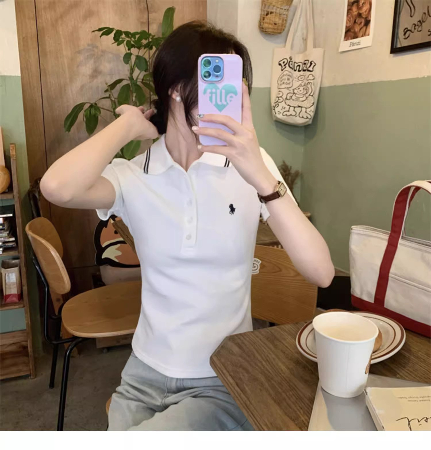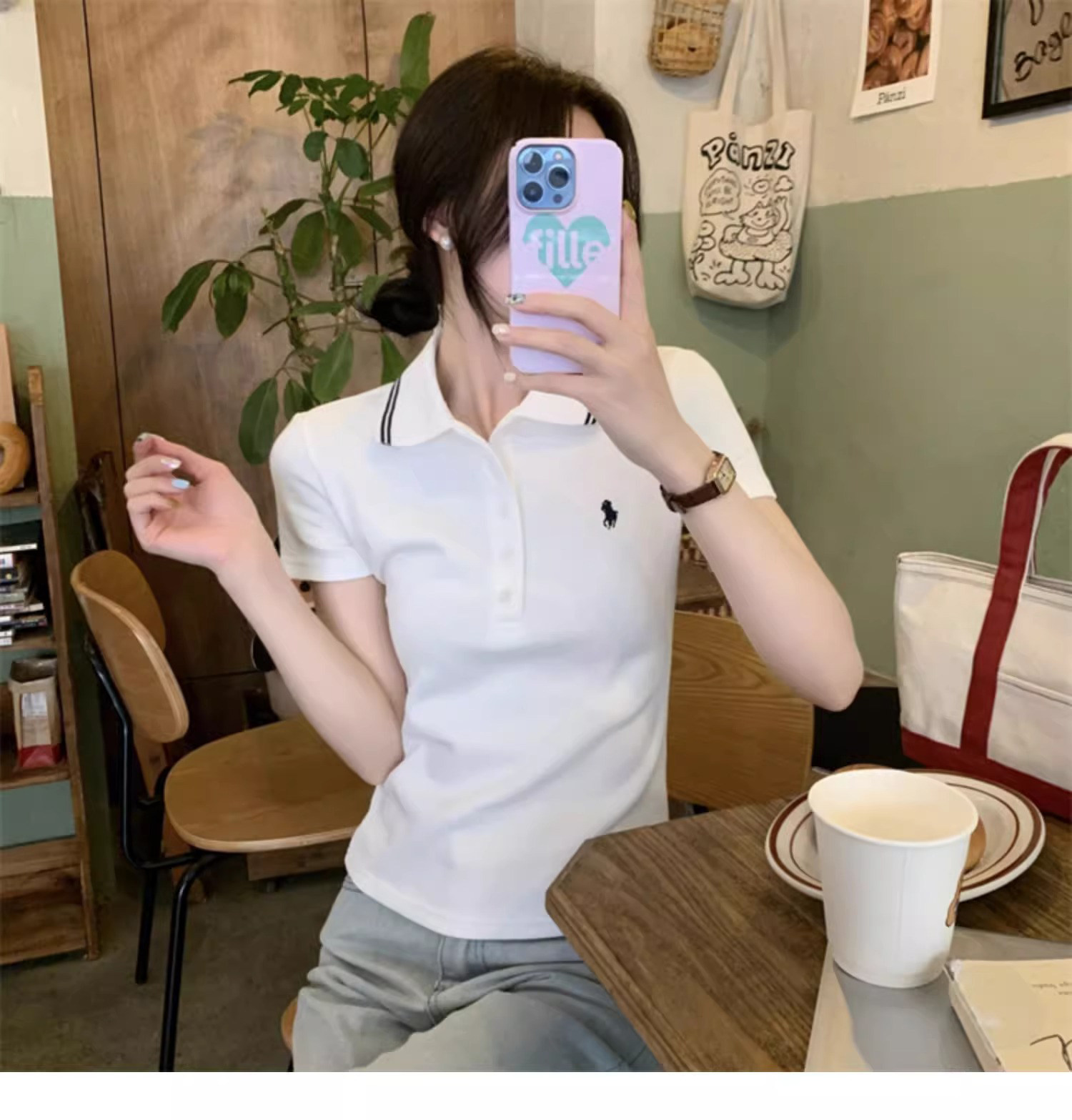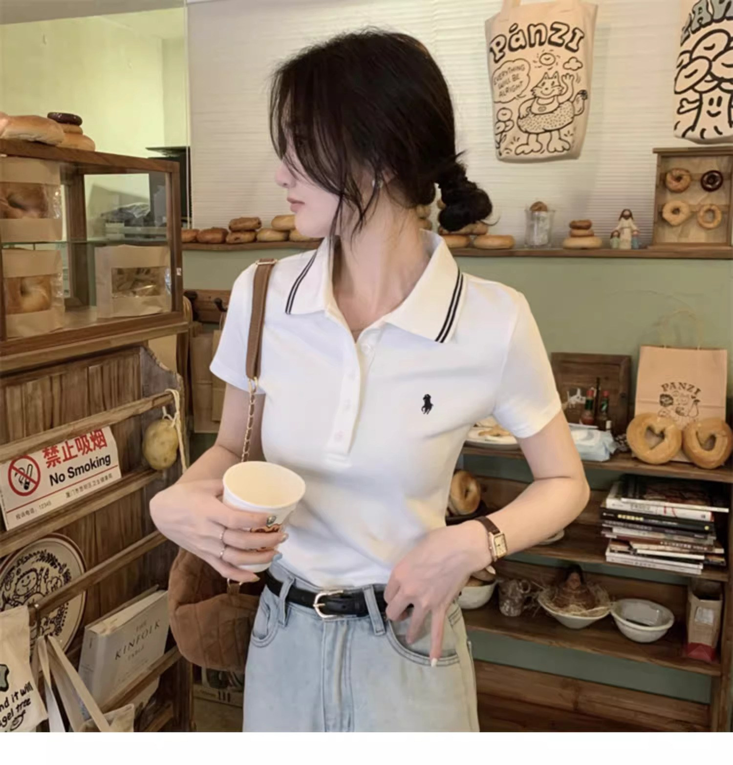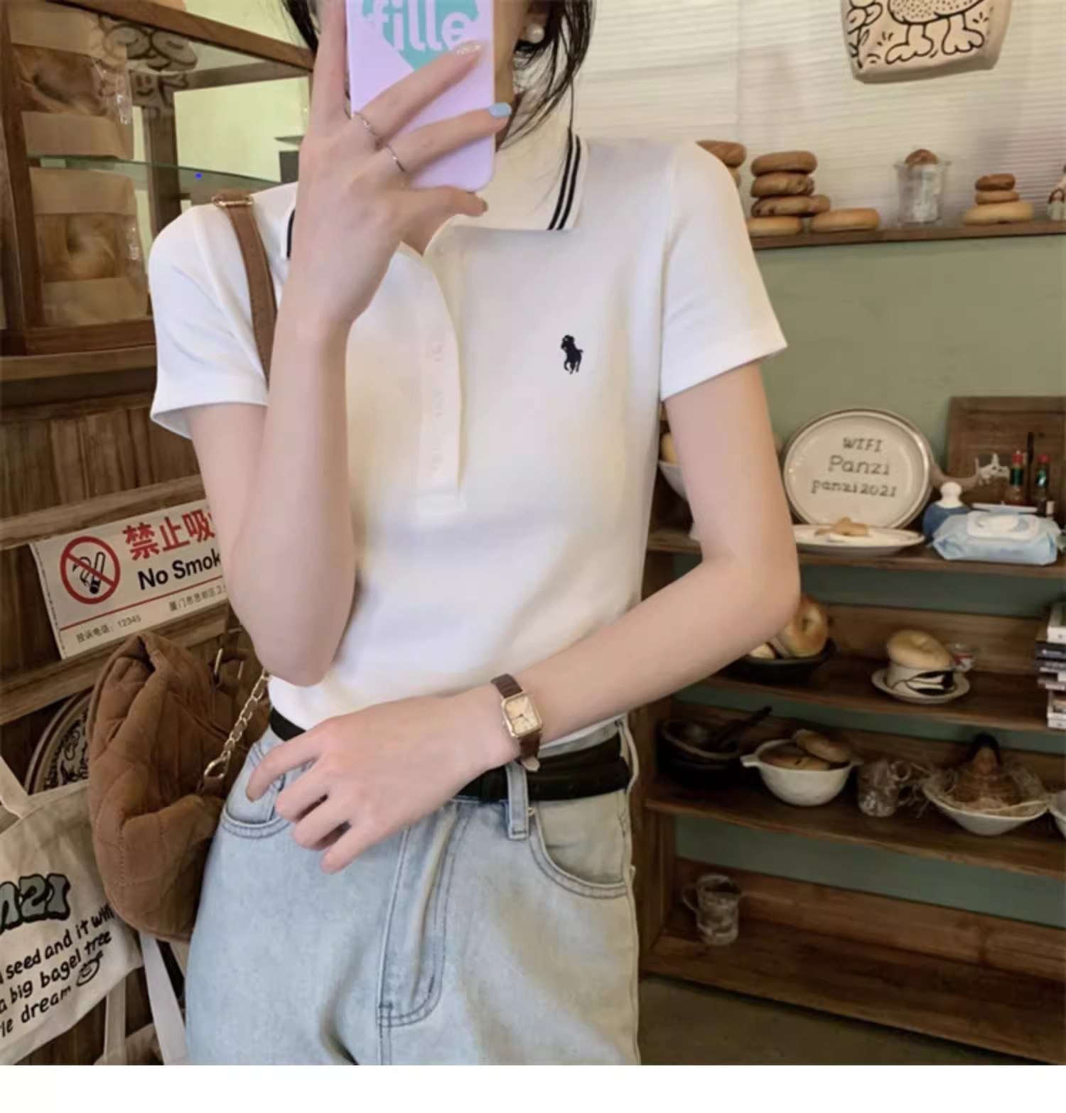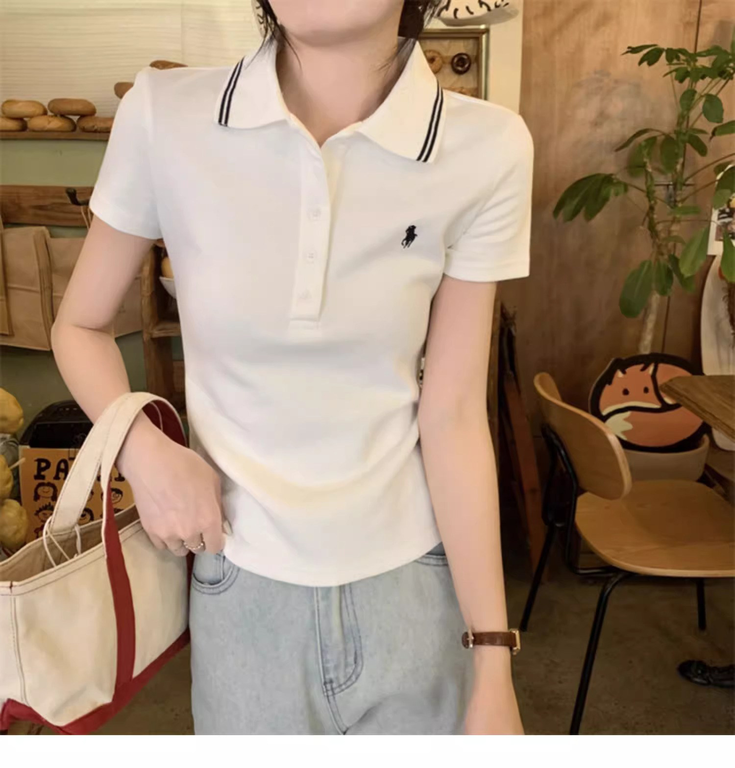 Summer American-Style Embroidered White Short-Sleeve T-Shirt for Women, Unique Design, Trendy Slim-Fit Polo Shirt