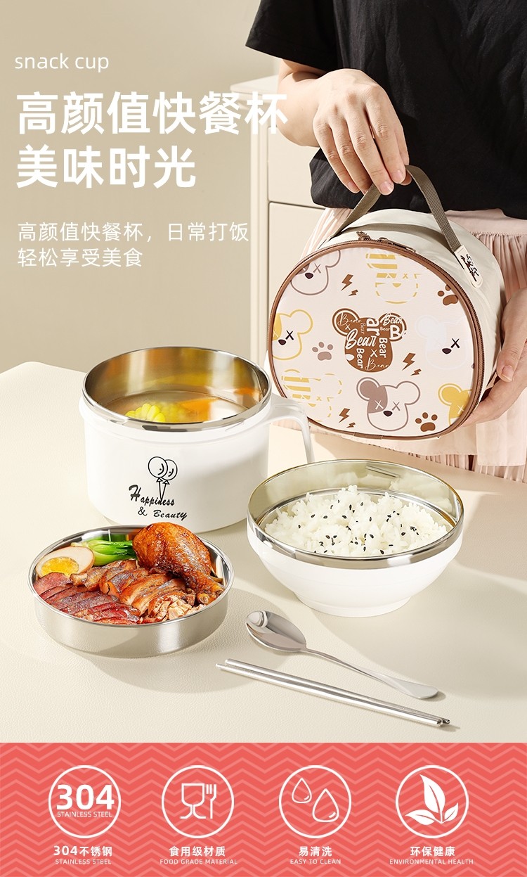 Japanese Imported Mujie304 Stainless Steel Insulated Lunch Box for Elementary School Students, Children's School Lunchware, Fast Food Cup, Lunch Container