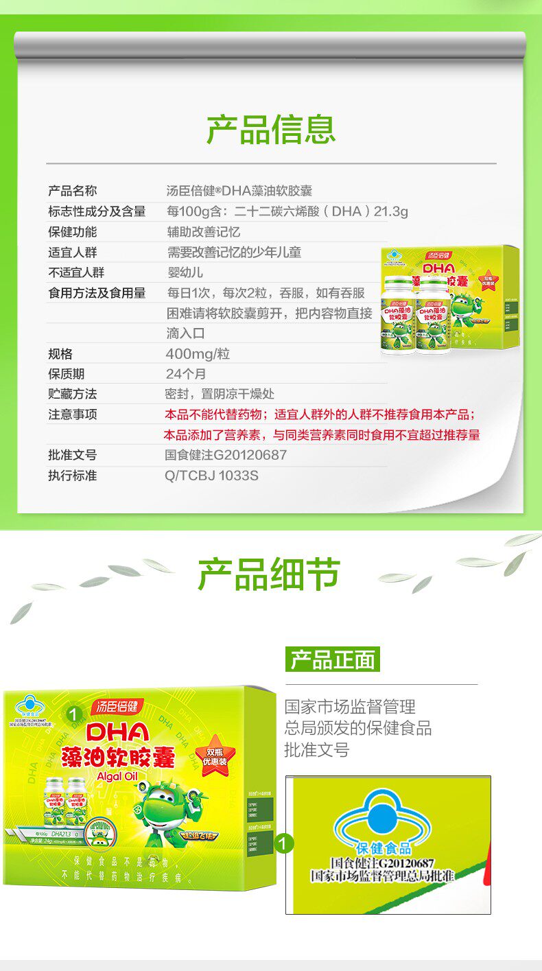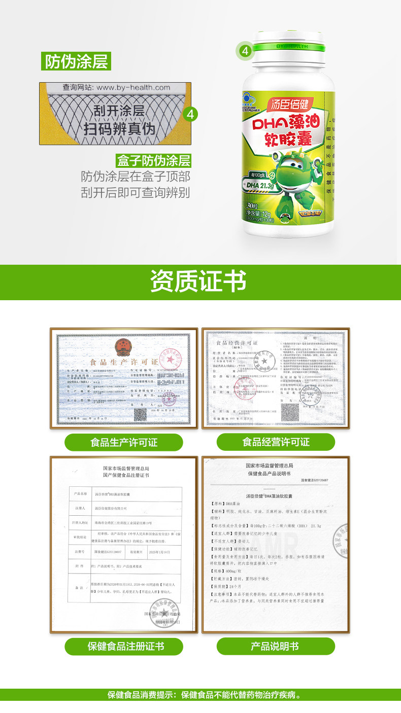 Tomson By-Health DHA Algae Oil Soft Capsules for children and students to help improve memory and enhance high school students and teenagers