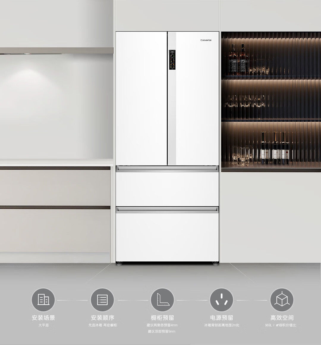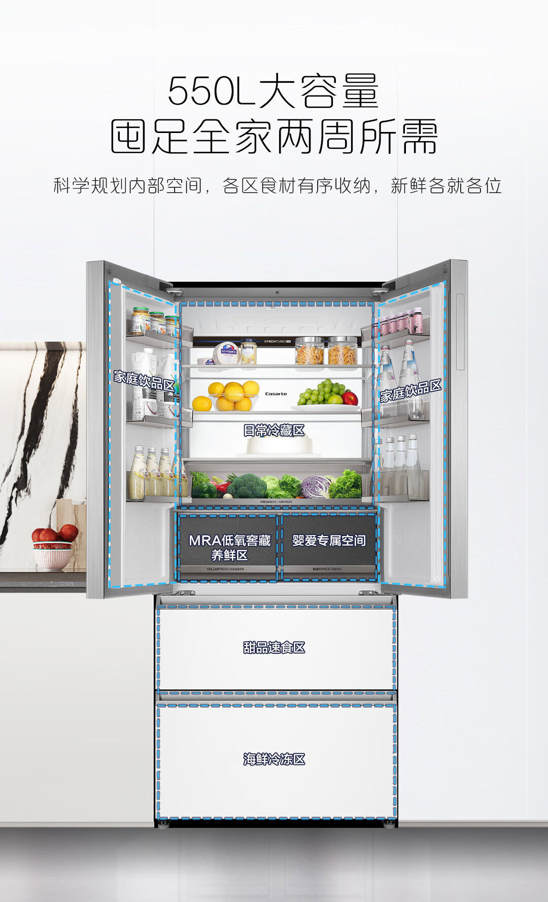 Casarte Bcd-550Wgcfdm4Wku1 Zero-Embedded French-Style Four-Door Refrigerator Ultra-Thin 551Wlctdm4Wku1
