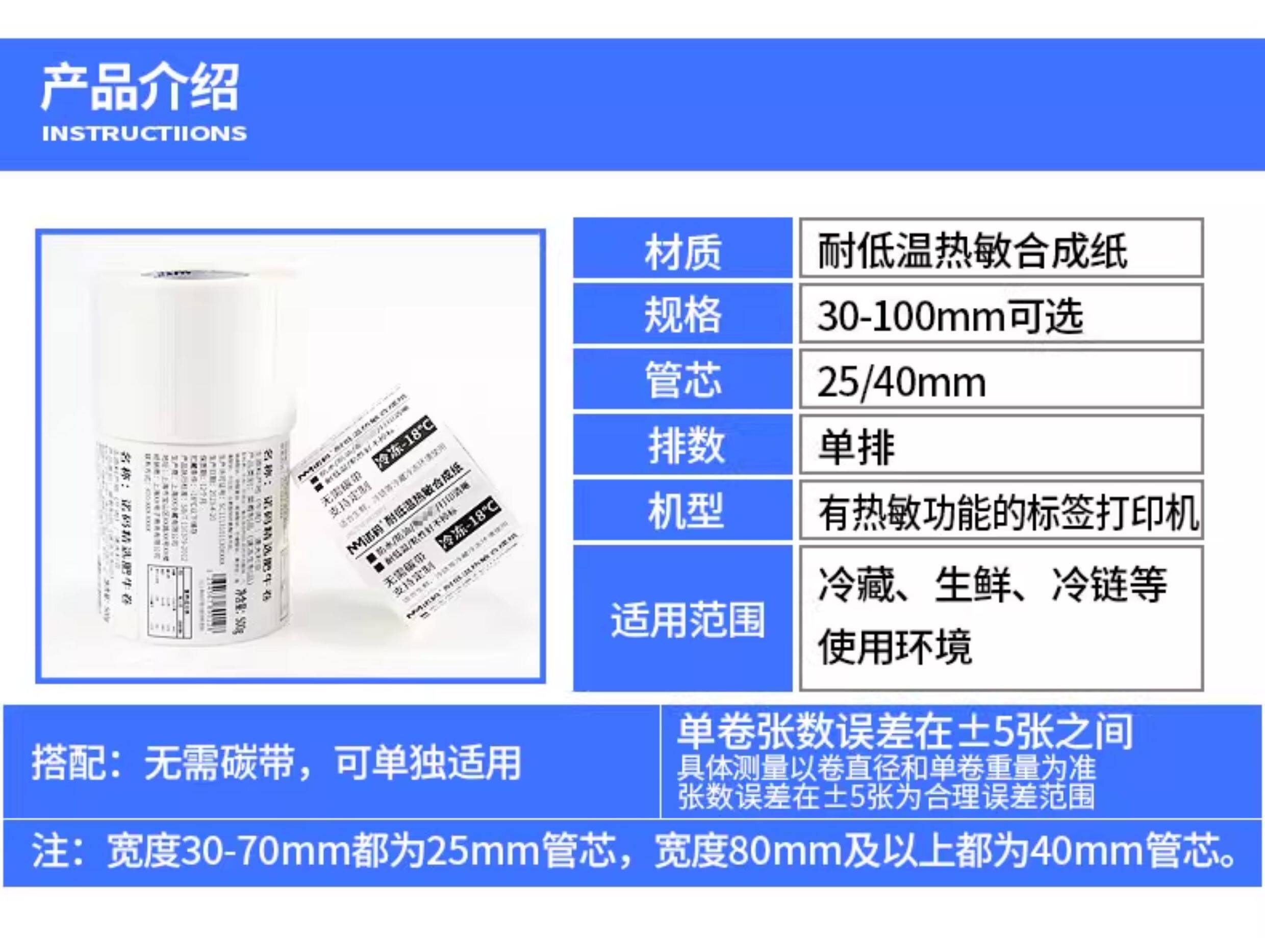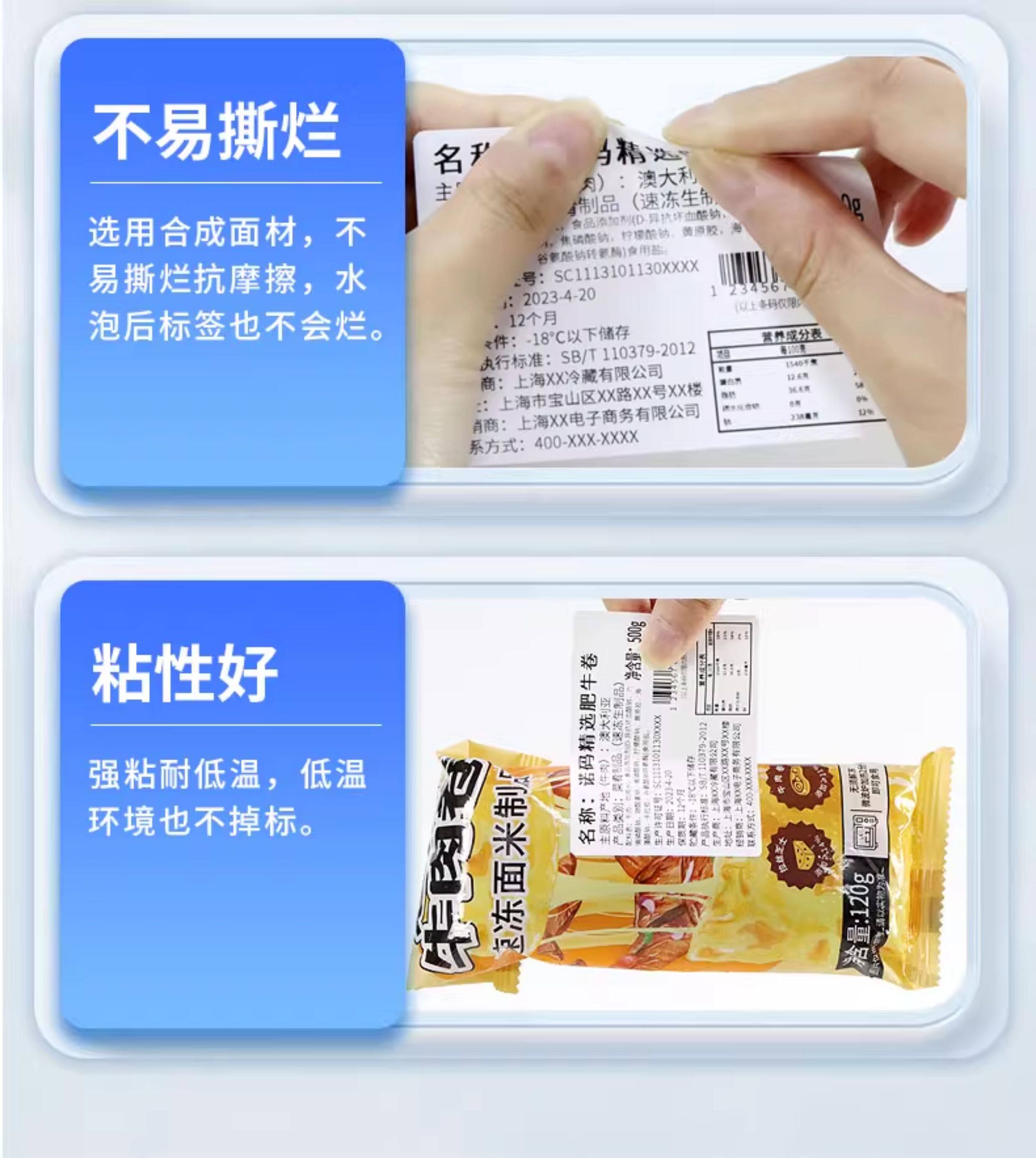 Waterproof, not easy to tear, five-proof heat-sensitive label paper, synthetic paper 60x40*30 20 50 70 80 100, low temperature and freezing resistance, three-proof self-adhesive printing paper, food sticker, four-proof refrigeration