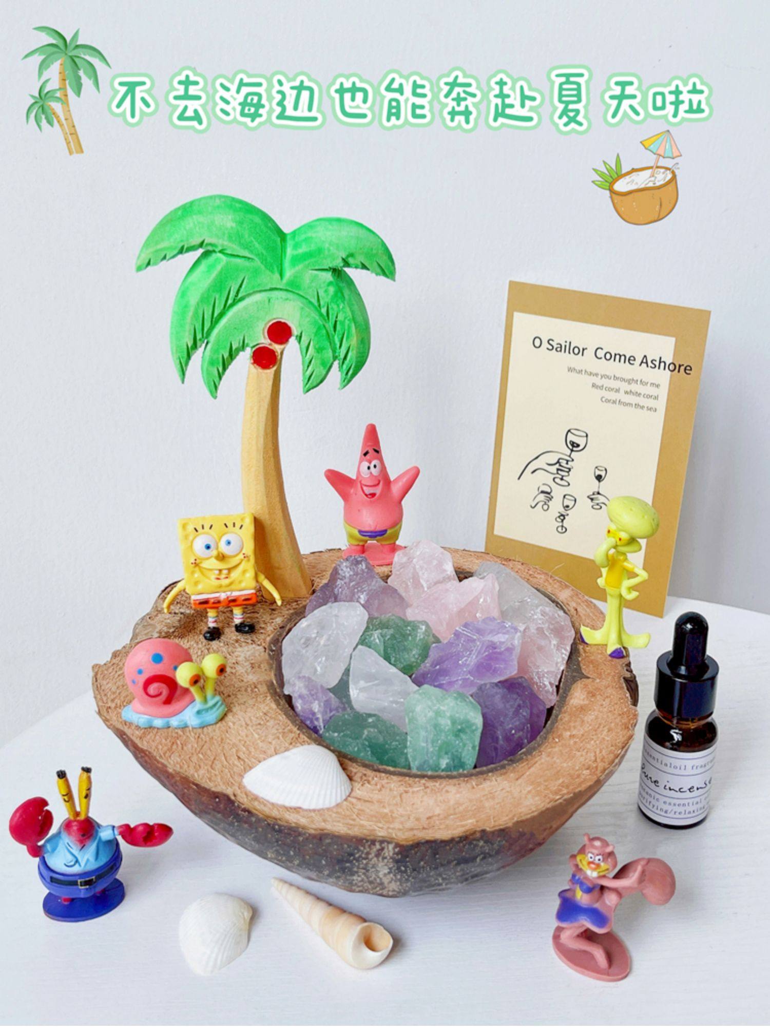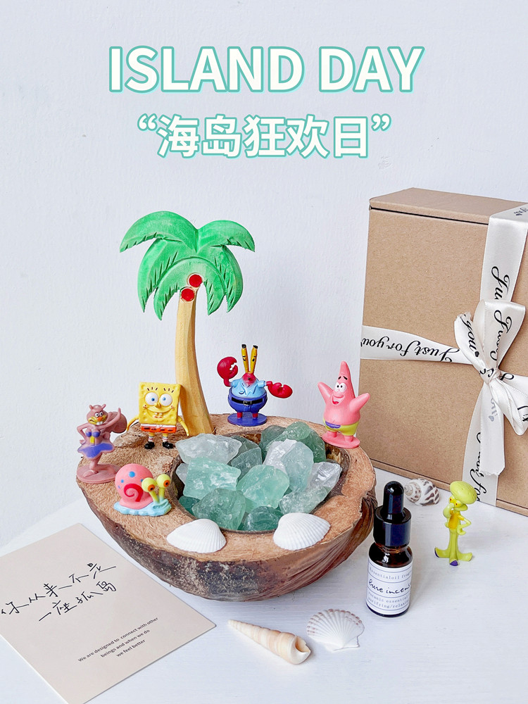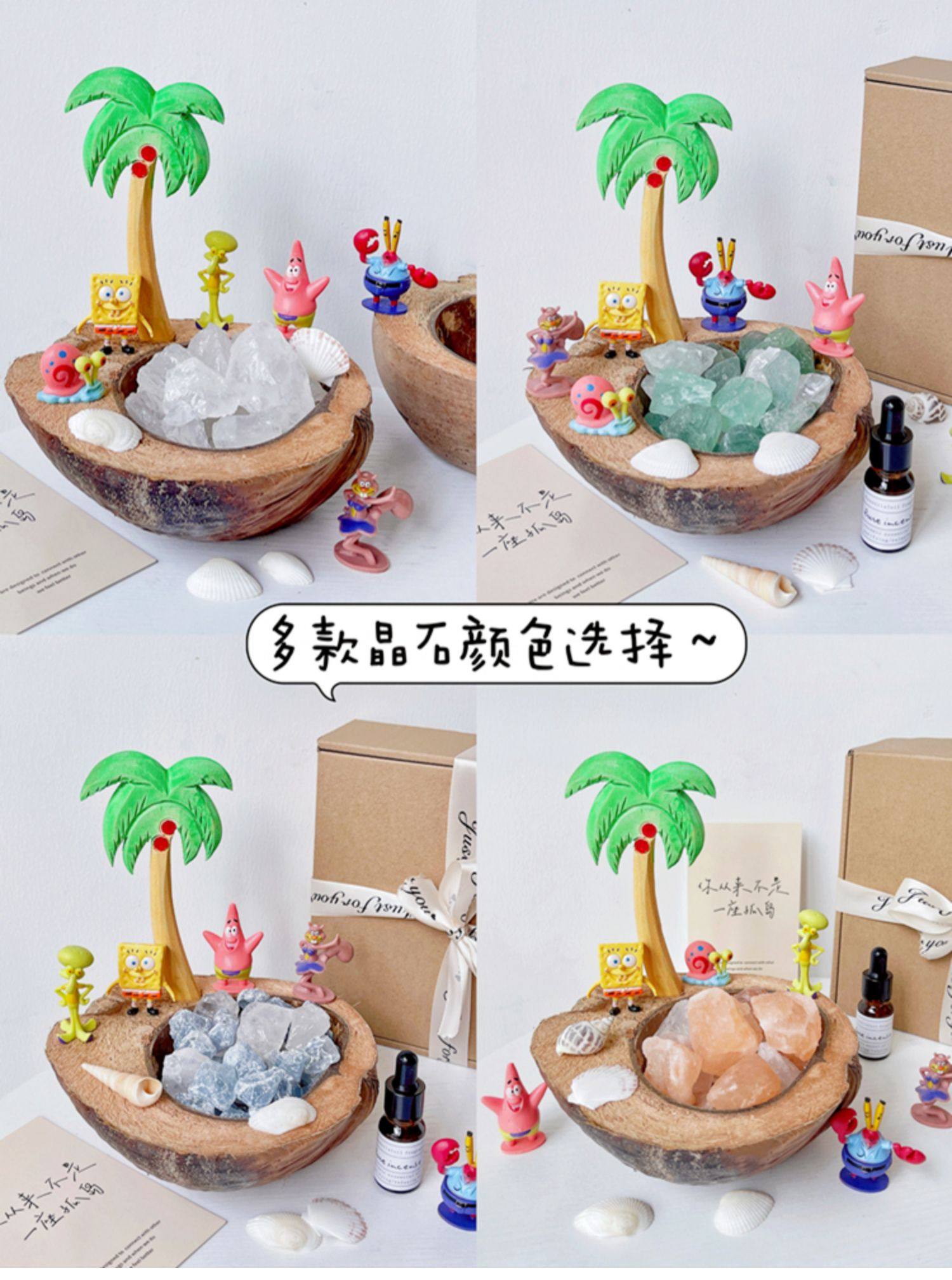 Coconut Tree Ship Crystal Fireless Aromatherapy Diffuser Stone Ornaments Bedroom Boys and Girls Light Fragrance Gift Box for Best Friend