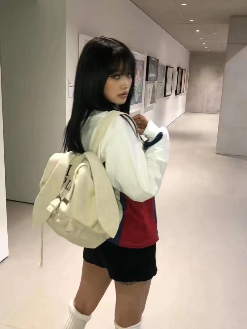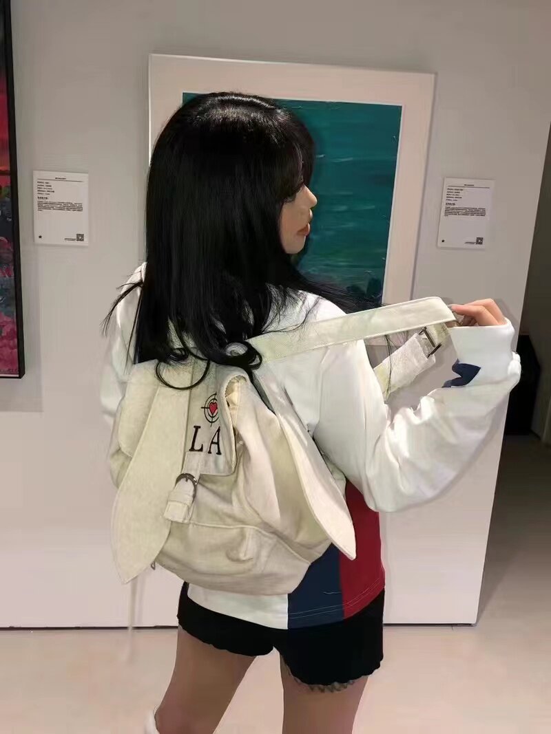 Sauce 22Aw Pla Series New Original Mink Fur Rabbit Ear Embroidered Backpack School Bag Unisex National Trend