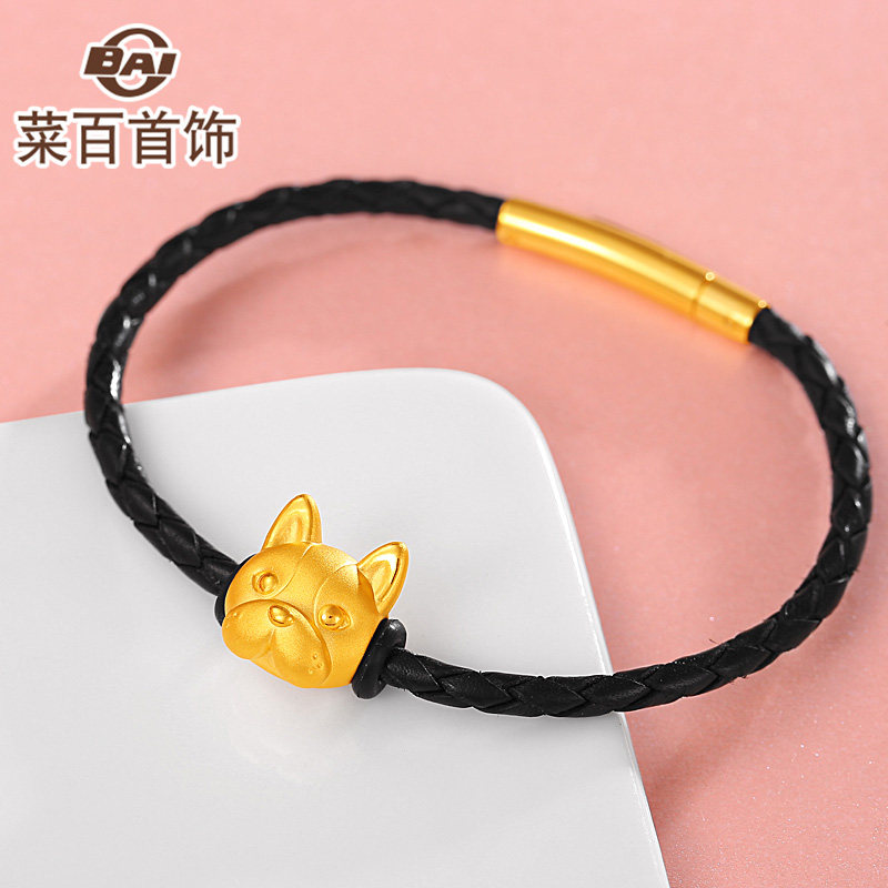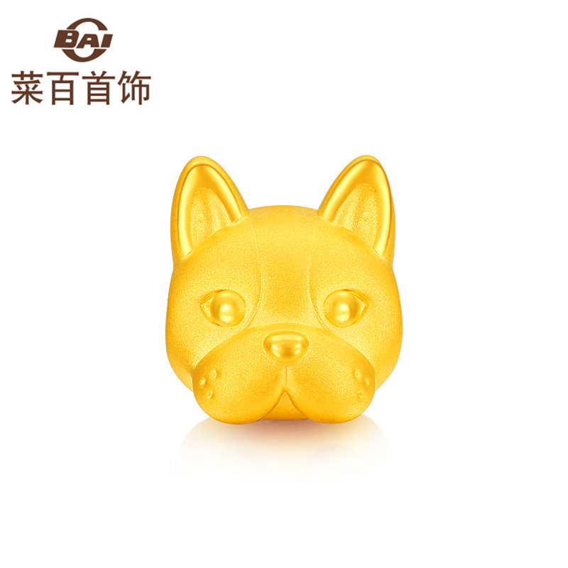 Cai Bai Jewelry Gold Fortune Beads Cute and Adorable Pure Gold Zodiac Dog Fortune Beads Q-Version French Bulldog Woven Beads