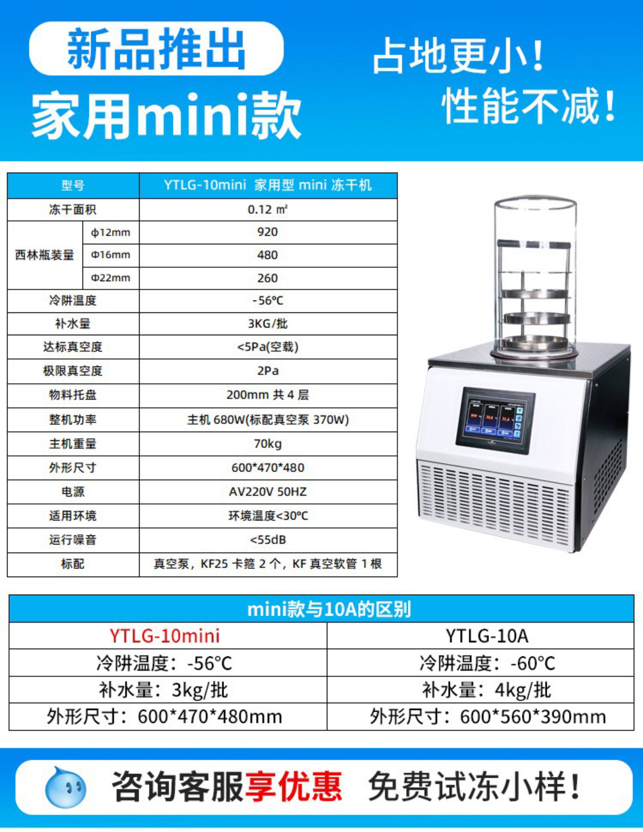 Shanghai Yetuo Freeze-Drying Machine Ytlg-10A Laboratory Household Small Pet Food Vacuum Freeze Dryer