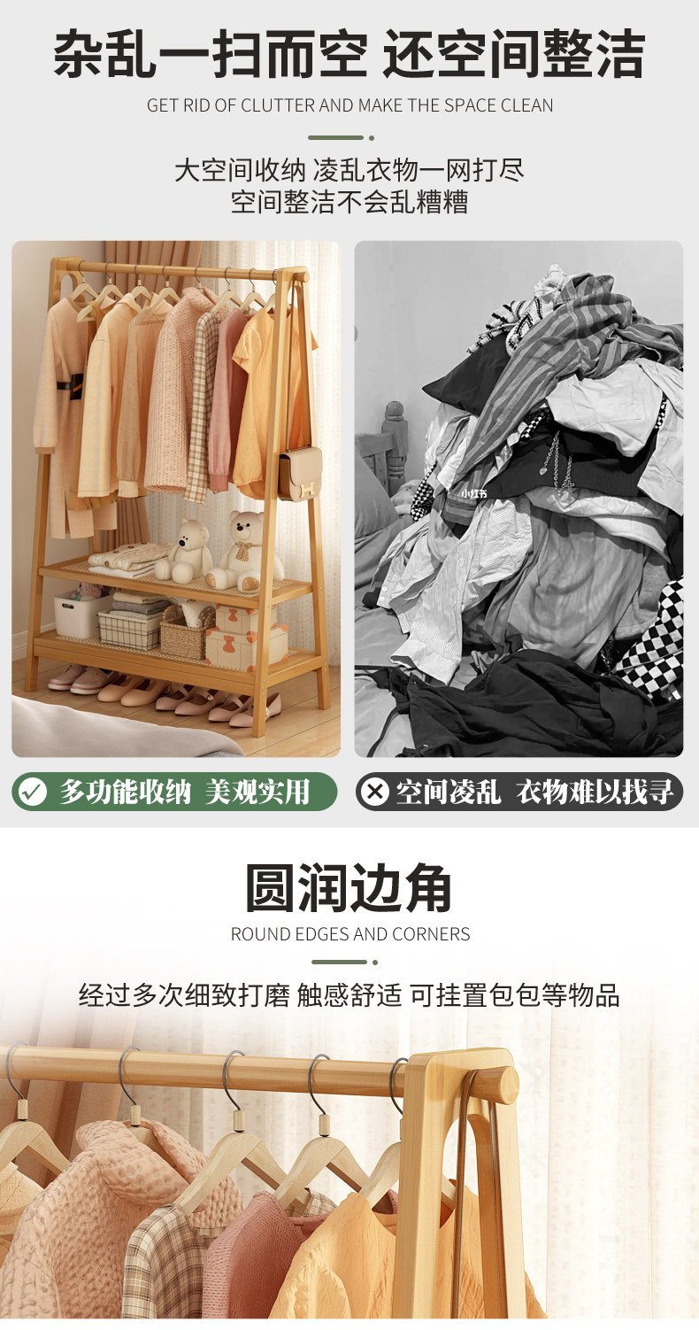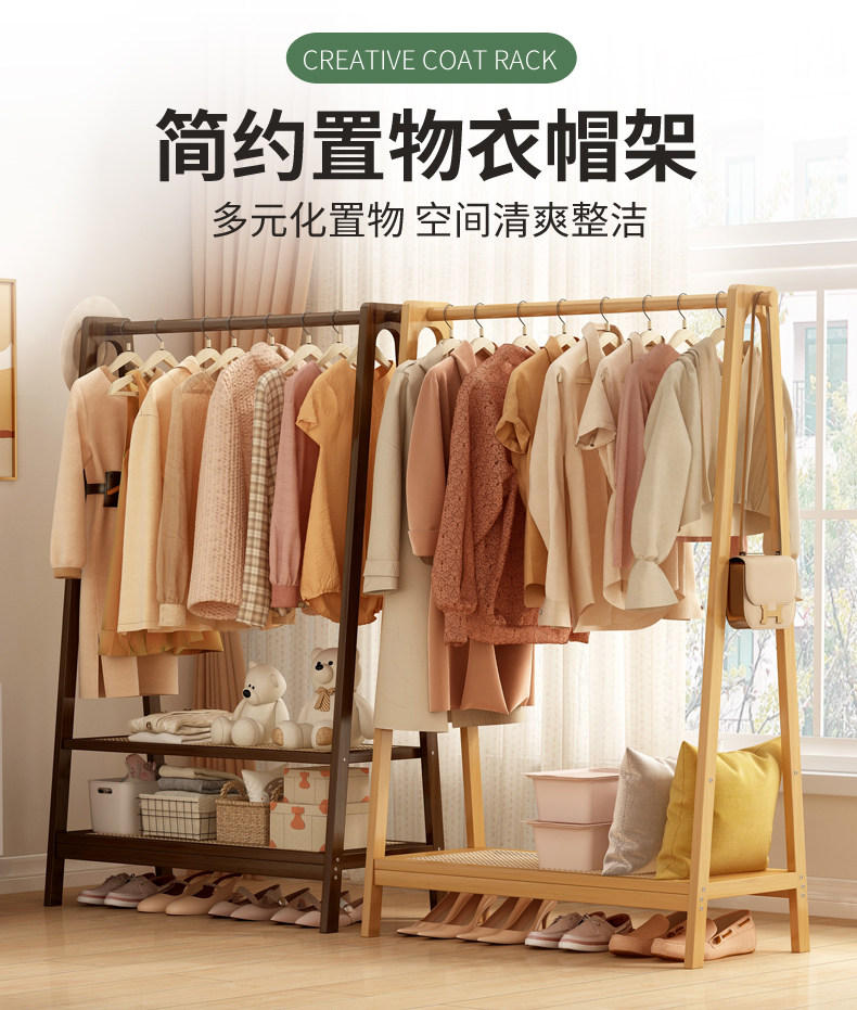 Simple Solid Wood Coat Rack Bedside Hanger Storage Rack Multifunctional Clothes Hanger Storage Organizer Small Clothes Rack