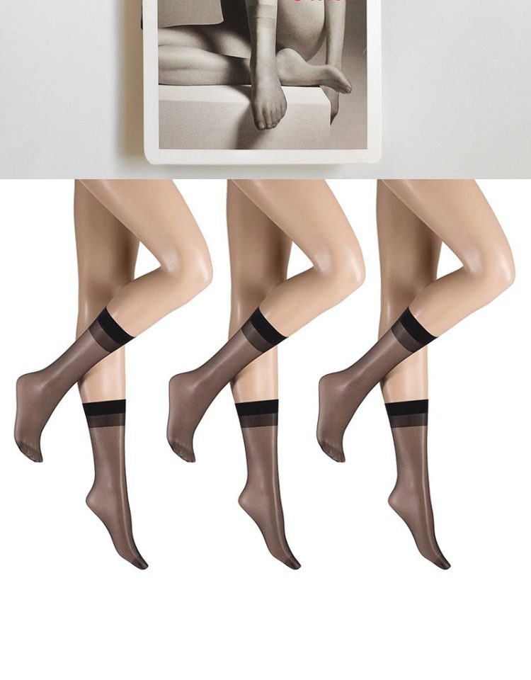 [3 Pairs Pack] German Imported Hudson Simply Shine 15D Glossy Silky Mid-Calf Socks for Women