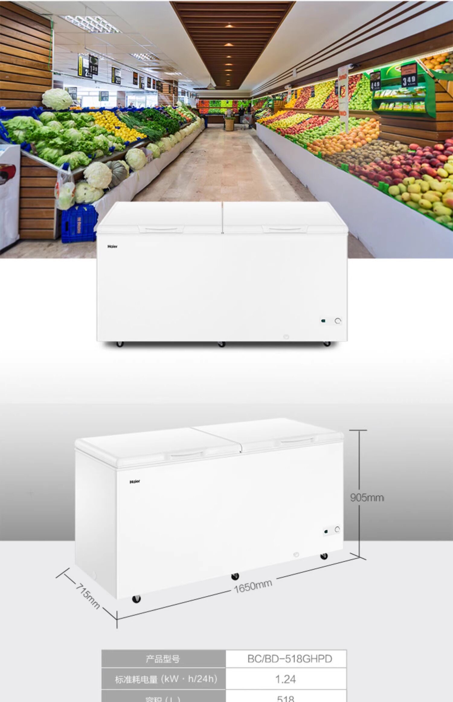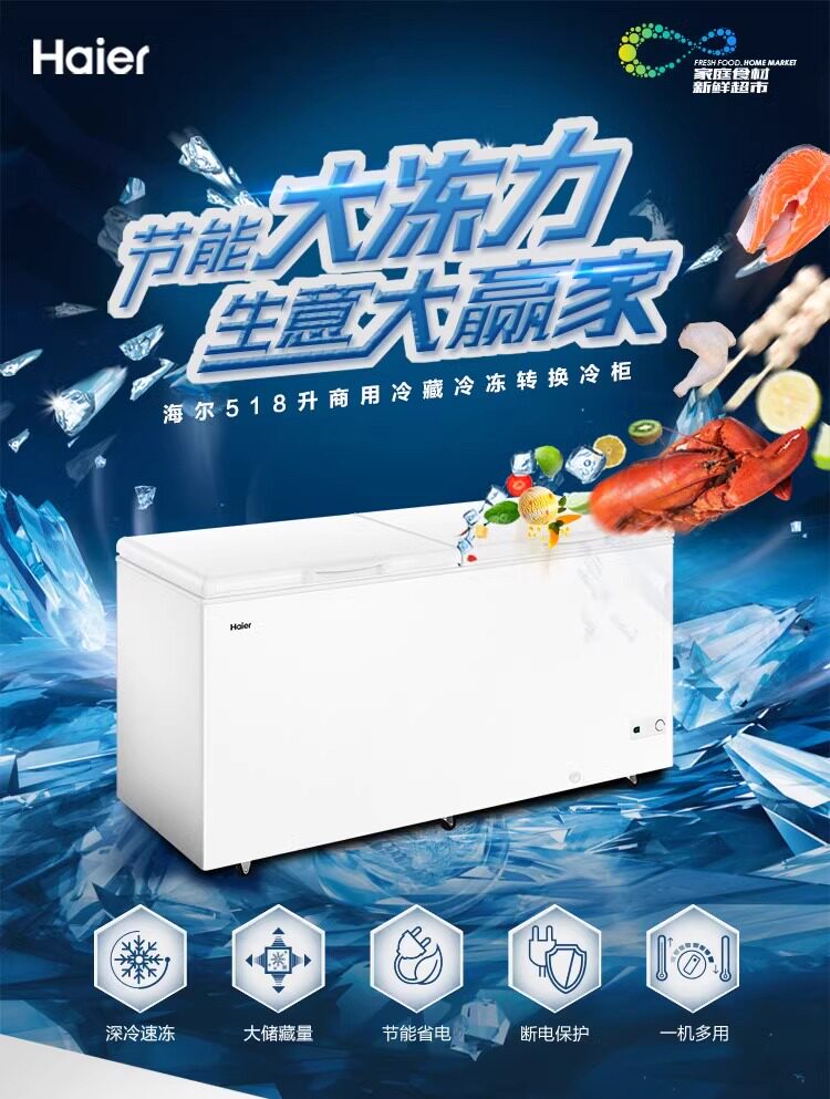Haier Bc/Bd-518Ghpd Large-Capacity Freezer for Home and Commercial Use, Horizontal Large Freezer for Fresh Keeping and Freezing