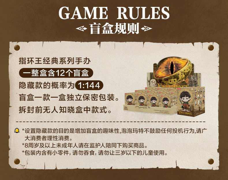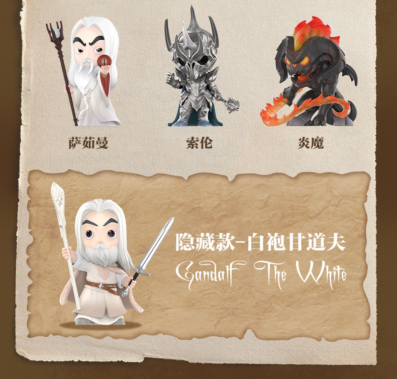 Style description Brand new and unopened single random blind box,Alwyn,Aragon,Frodo Baggins,Guru,Gandalf the Gray,Gimli,Galadriel,Legolas,Saruman,Sam,Balrog,Sauron,Hidden model-Gandalf the White,Twelve basic models unboxed and unpacked,Brand new and unopened in a plastic box (highly likely to be hidden)