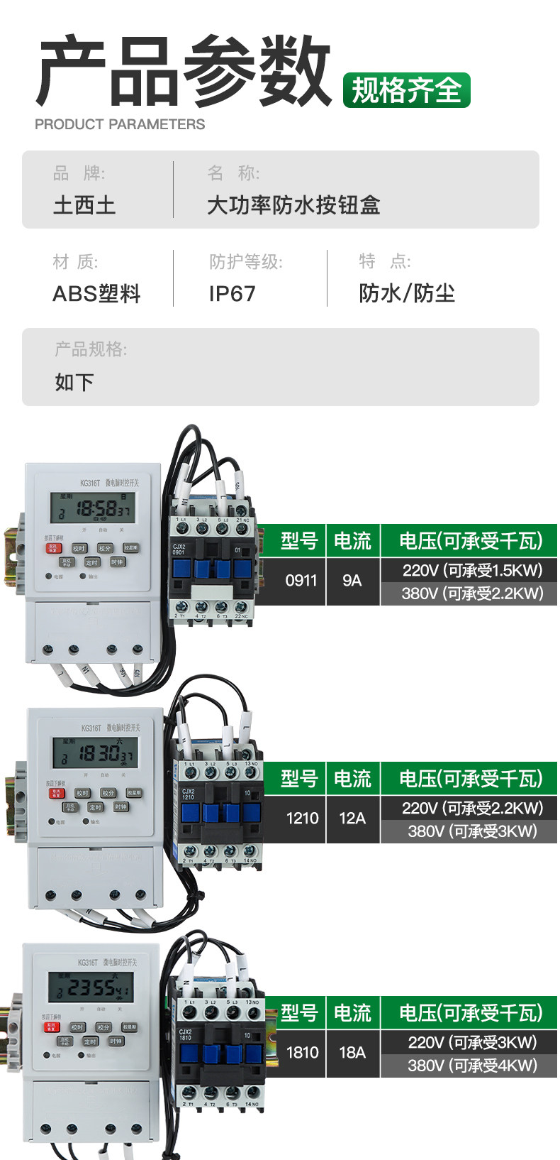 Color Classification 9A 380V 2.2Kw Power Time Control Set,12A 380V 3Kw Power Time Control Set,18A 380V 4Kw Power Time Control Set,25A 380V 5.5Kw Power Time Control Set,32A 380V 7.5Kw Power Time Control Set,40A 380V 15Kw Power Time Control Set,50A 380V 18Kw Power Time Control Set,65A 380V 22Kw Power Time Control Set,80A 380V 30Kw Power Time Control Set,95A 380V 37Kw Power Time Control Set,9A 220V 1.5Kw Power Time Control Set,12A 220V 2.2Kw Power Time Control Set,18A 220V 3Kw Power Time Control Set,25A 220V 4Kw Power Time Control Set,32A 220V 5.5Kw Power Time Control Set,40A 220V 7.5Kw Power Time Control Set,50A 220V 12Kw Power Time Control Set,65A 220V 15Kw Power Time Control Set,80A 220V 18Kw Power Time Control Set,95A 220V 20Kw Power Time Control Set,Total on +9A 380V 2.2Kw Power Timer Kit,Total on + 12A 380V 3Kw Power Timer Kit,Total Opening +18A 380V 4Kw Power Time Control Set,Total Opening +25A 380V 5.5Kw Power Time Control Set,Total Opening +32A 380V 7.5Kw Power Time Control Set,Total on + 40A 380V 15Kw Power Timer Kit,Total Opening +50A 380V 18Kw Power Time Control Set,Total on + 65A 380V 22Kw Power Timer Kit,Total Opening +80A 380V 30Kw Power Time Control Set,Total Opening +95A 380V 37Kw Power Time Control Set,Total on +9A 220V 1.5Kw Power Timer Kit,Total Opening +12A 220V 2.2Kw Power Time Control Set,Total Opening +18A 220V 3Kw Power Time Control Set,Total on + 25A 220V 4Kw Power Timer Kit,Total Opening +32A 220V 5.5Kw Power Time Control Set,Total on + 40A 220V 7.5Kw Power Timer Kit,Total Opening +50A 220V 12Kw Power Time Control Set,Total on + 65A 220V 15Kw Power Timer Kit,Total on +80A 220V 18Kw Power Timer Kit,Total Opening +95A 220V 20Kw Power Time Control Set