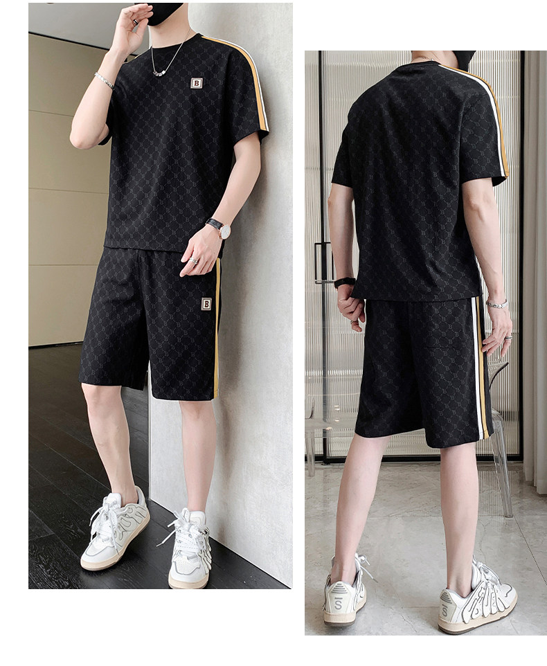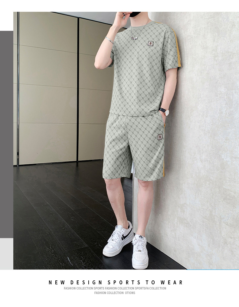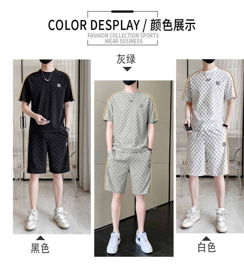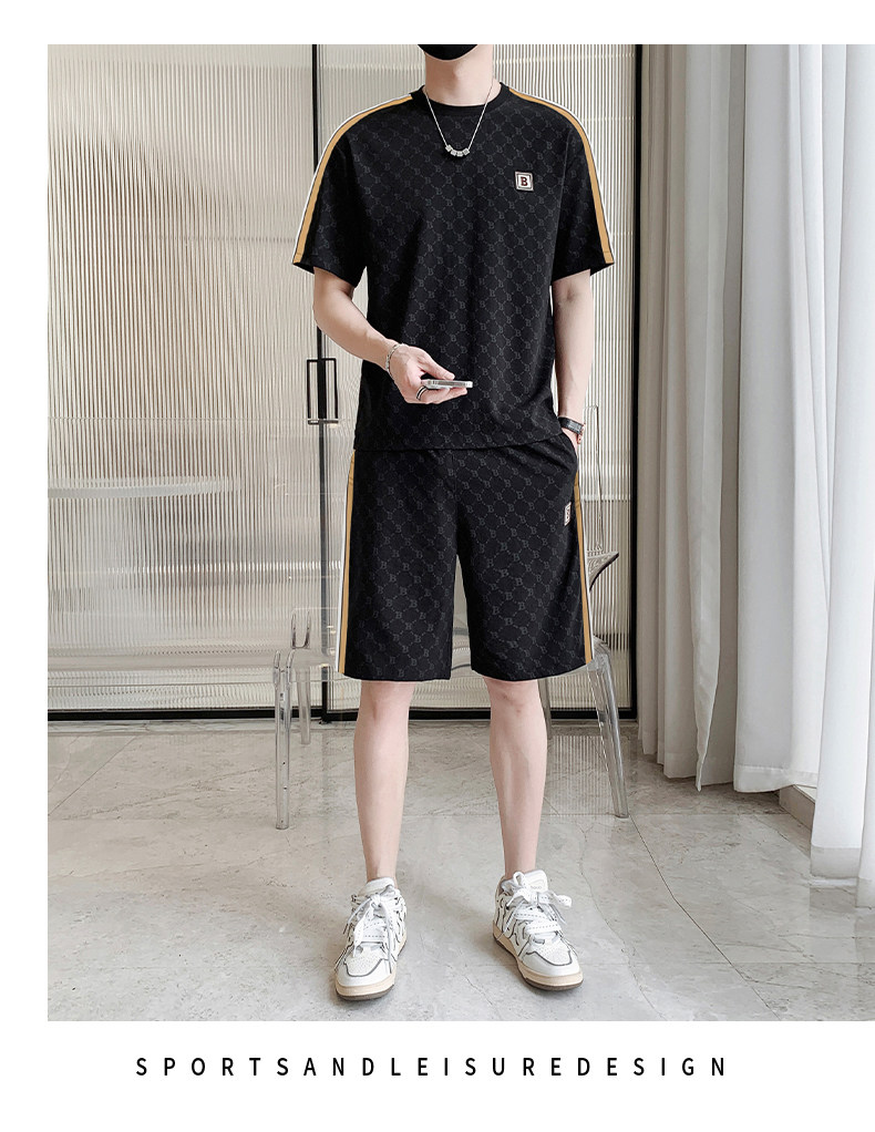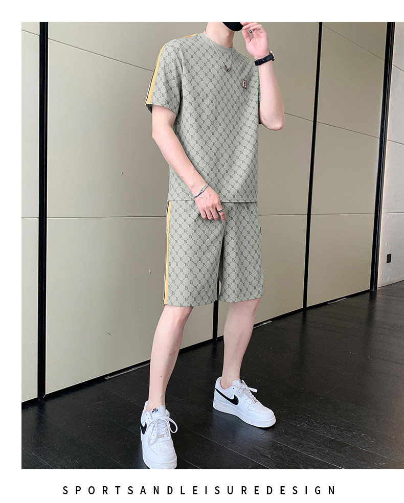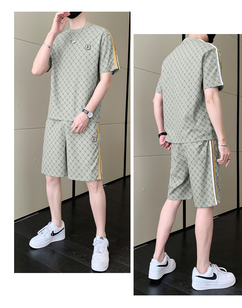 Summer casual sports short-sleeved suit for men's ice silk quick-drying set with fashionable European version shorts men's two-piece suit