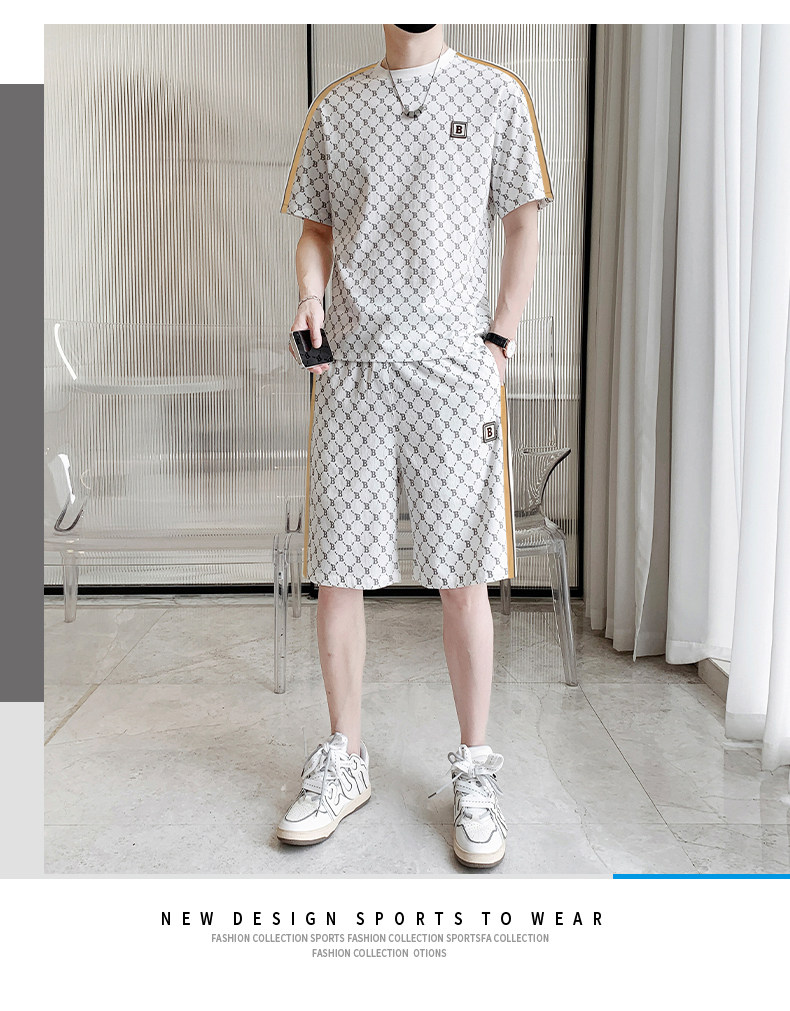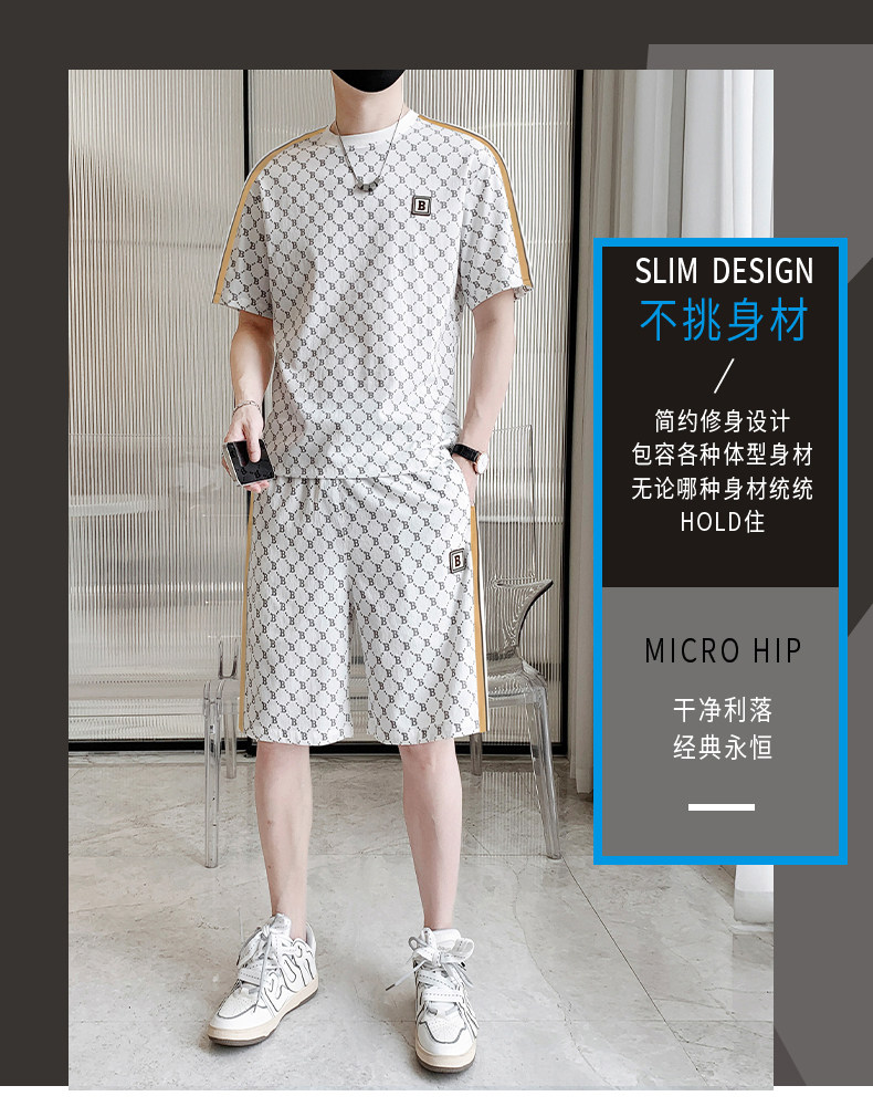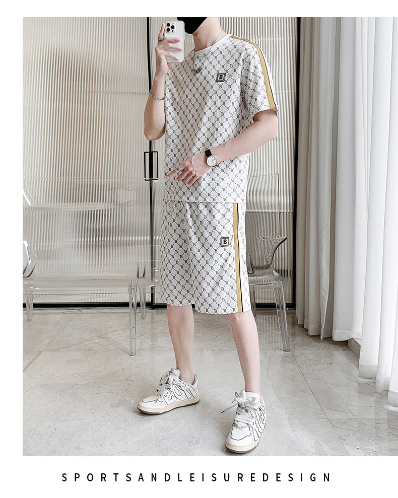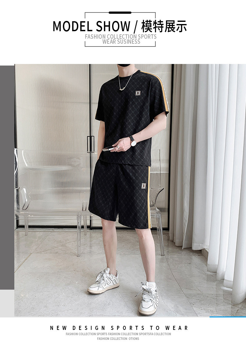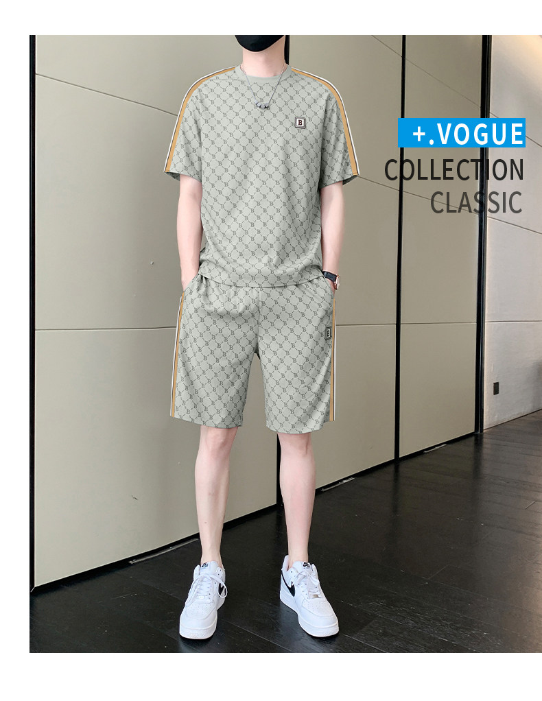Summer casual sports short-sleeved suit for men's ice silk quick-drying set with fashionable European version shorts men's two-piece suit