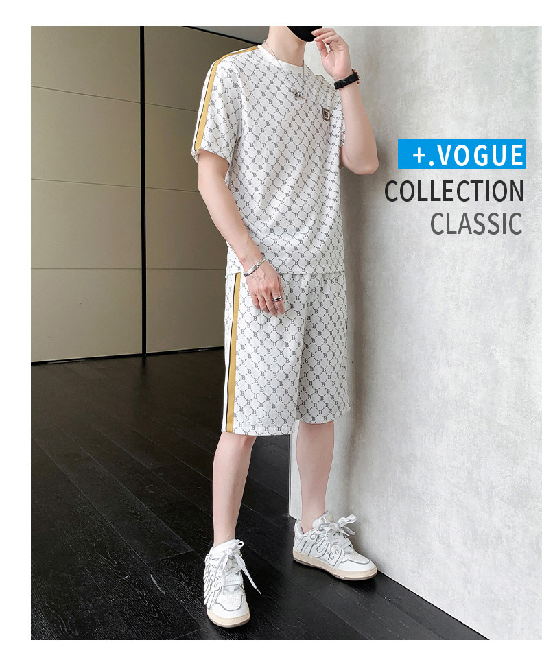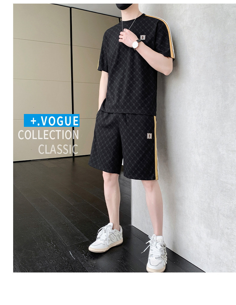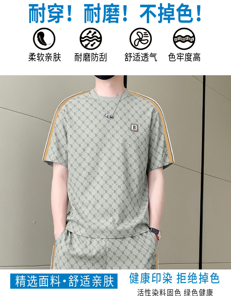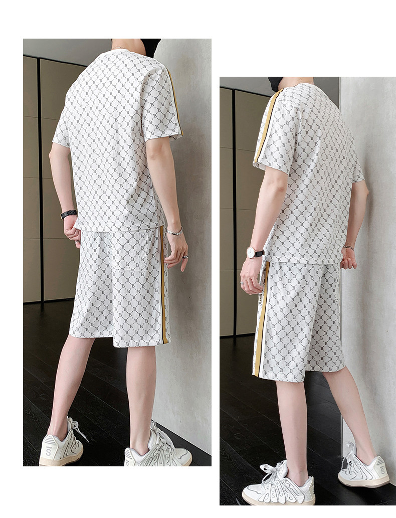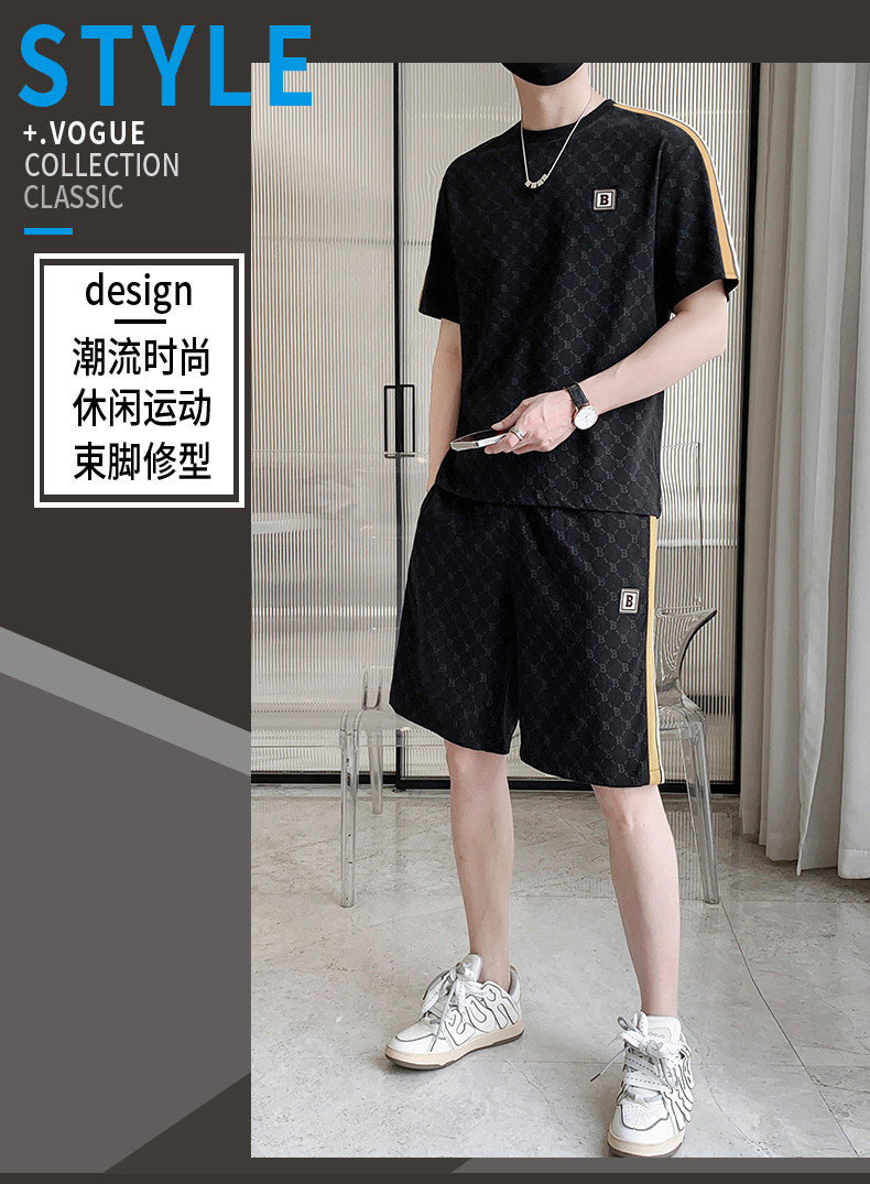 Summer casual sports short-sleeved suit for men's ice silk quick-drying set with fashionable European version shorts men's two-piece suit