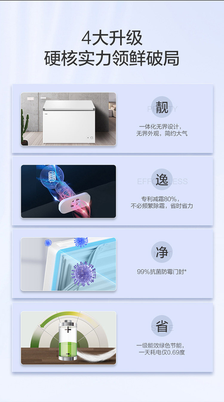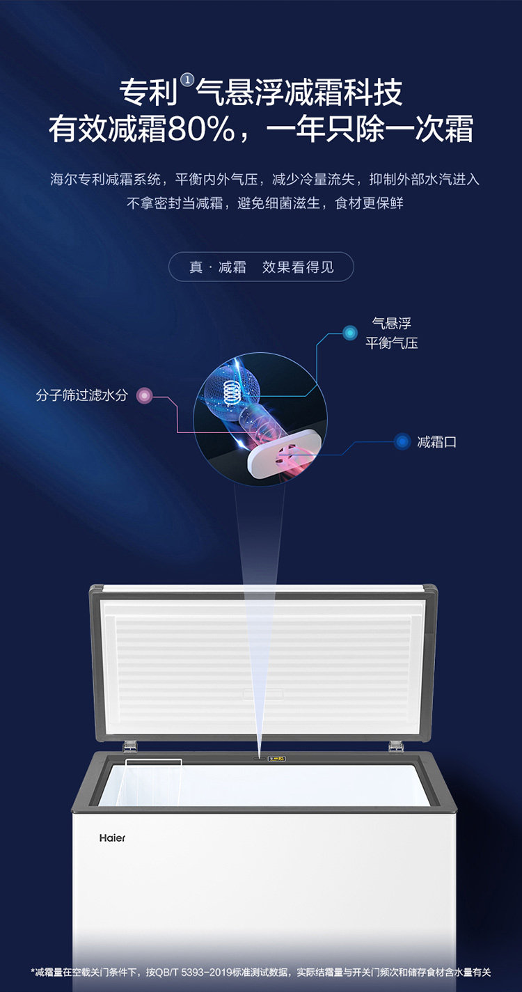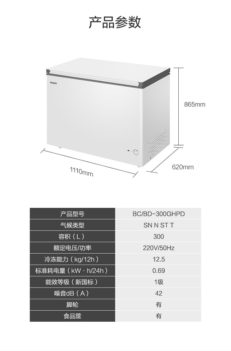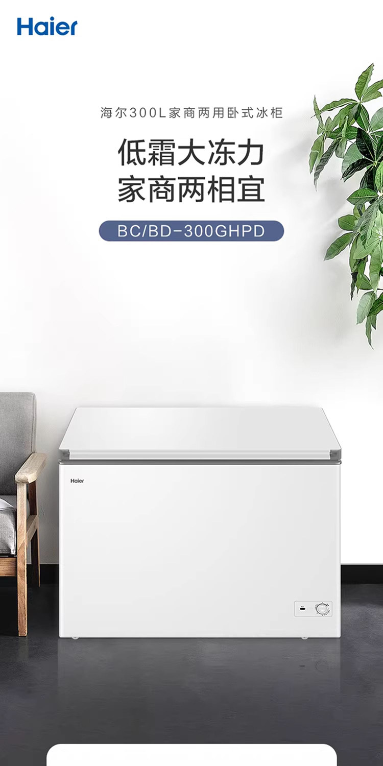 Haier Bc/Bd-300Ghpd Household Large Capacity Freezer with Frost Reduction, Horizontal Freezer, Single Temperature