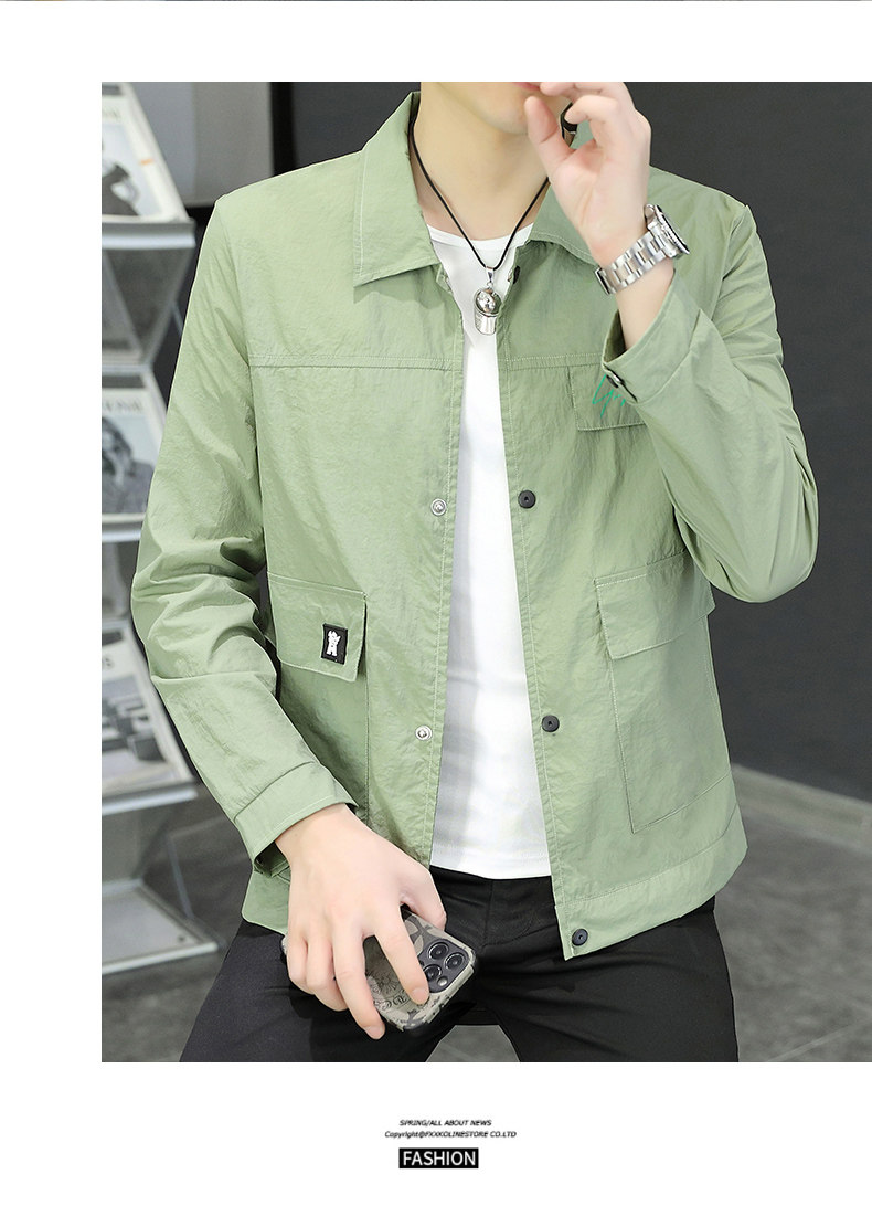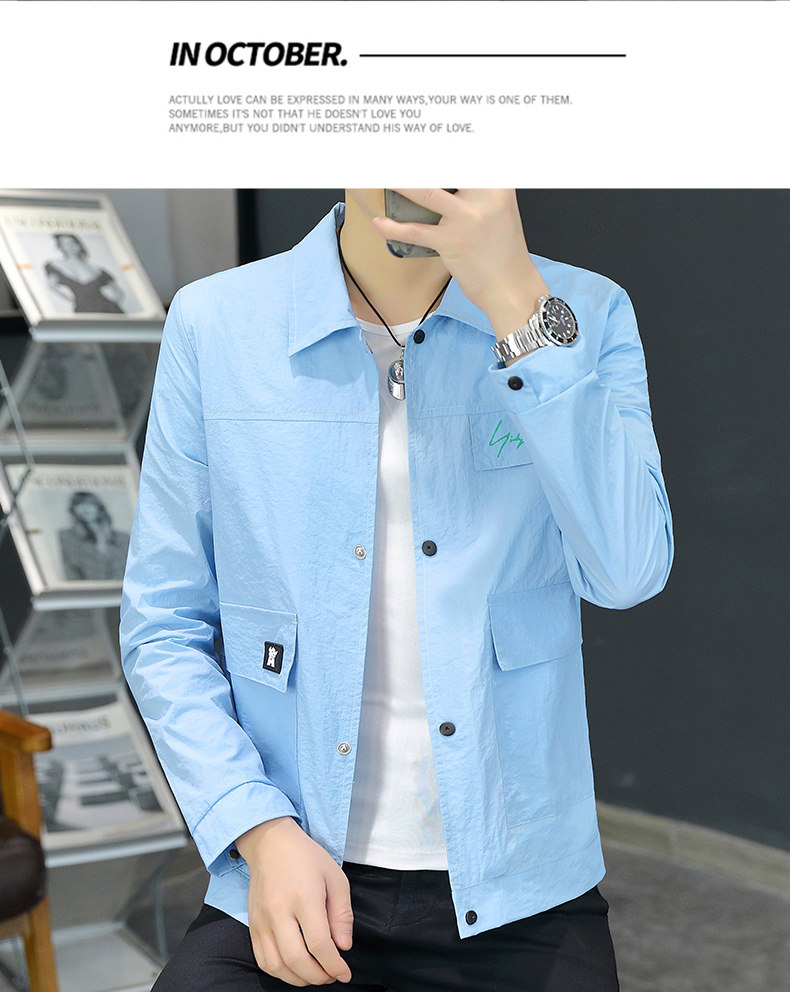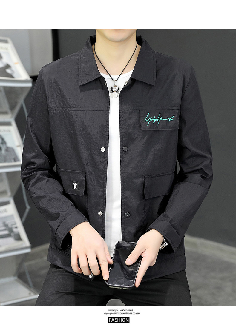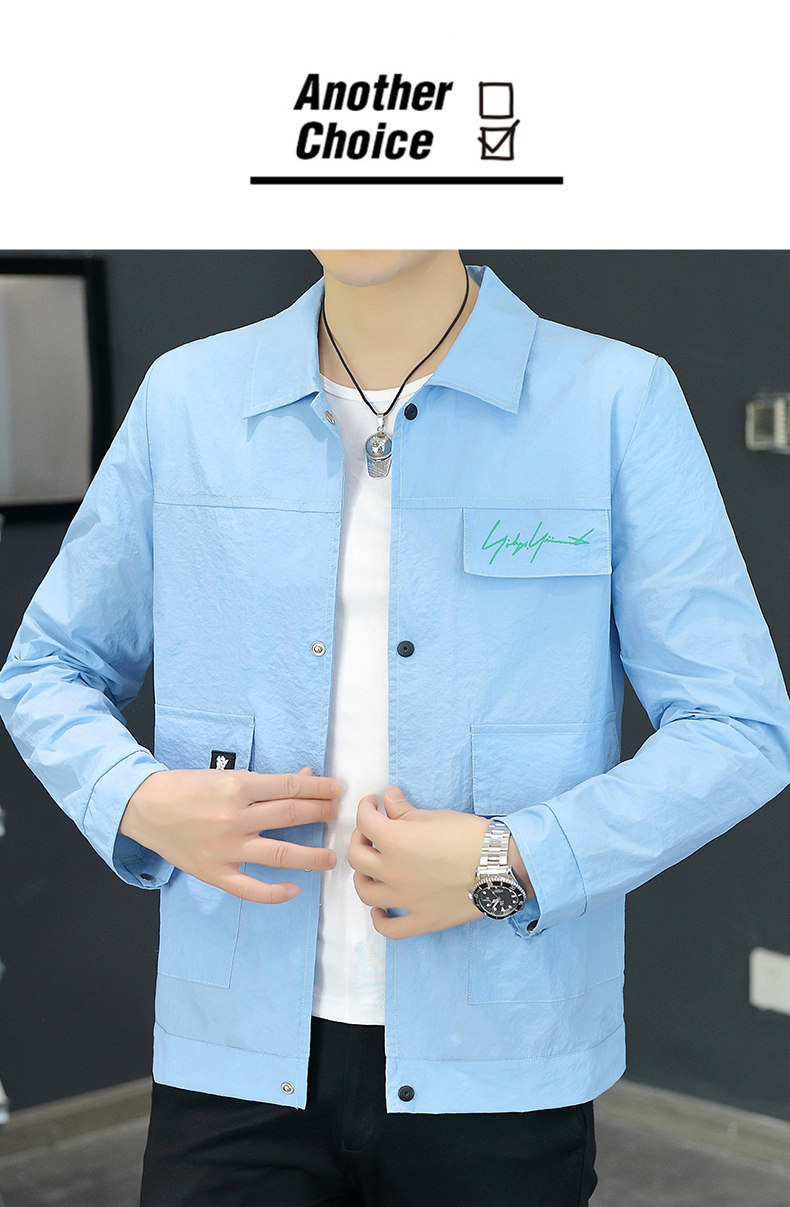 Sun Protection Clothing for Men, Summer Lightweight Jacket, Casual Ice Silk Breathable Versatile Lapel Top, High-End Trendy Coat