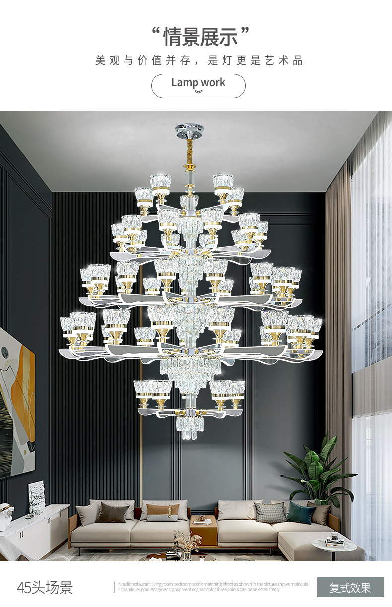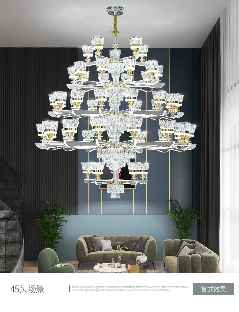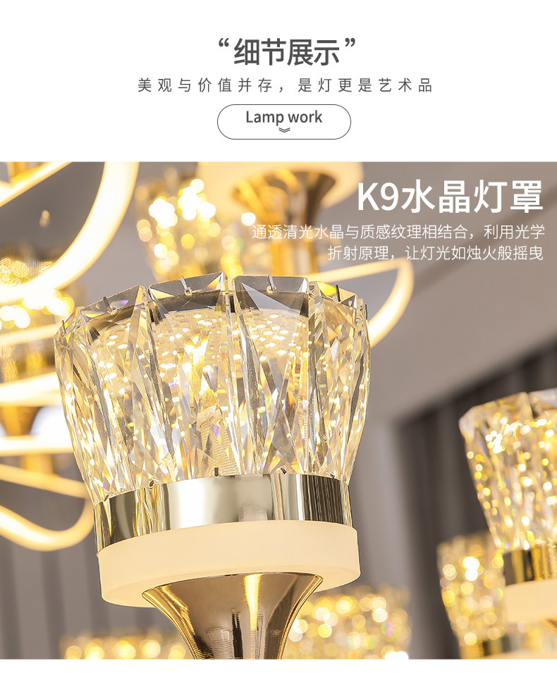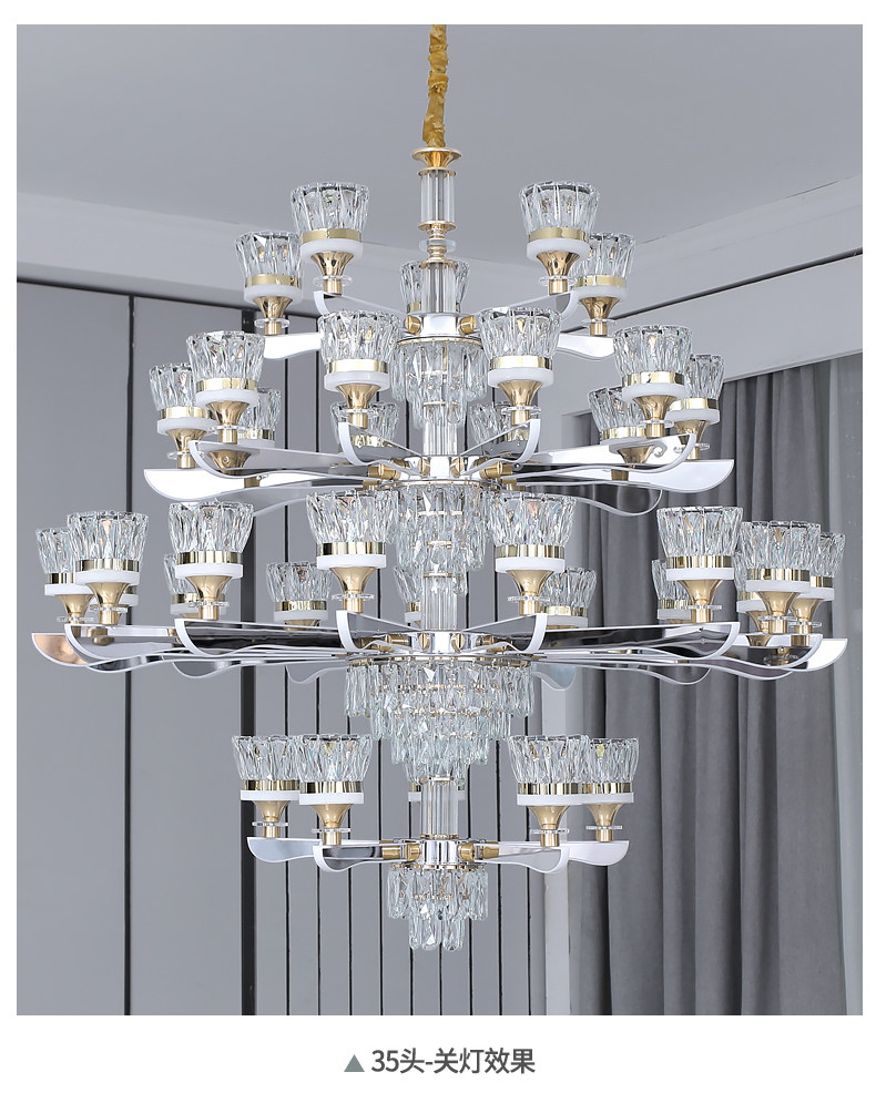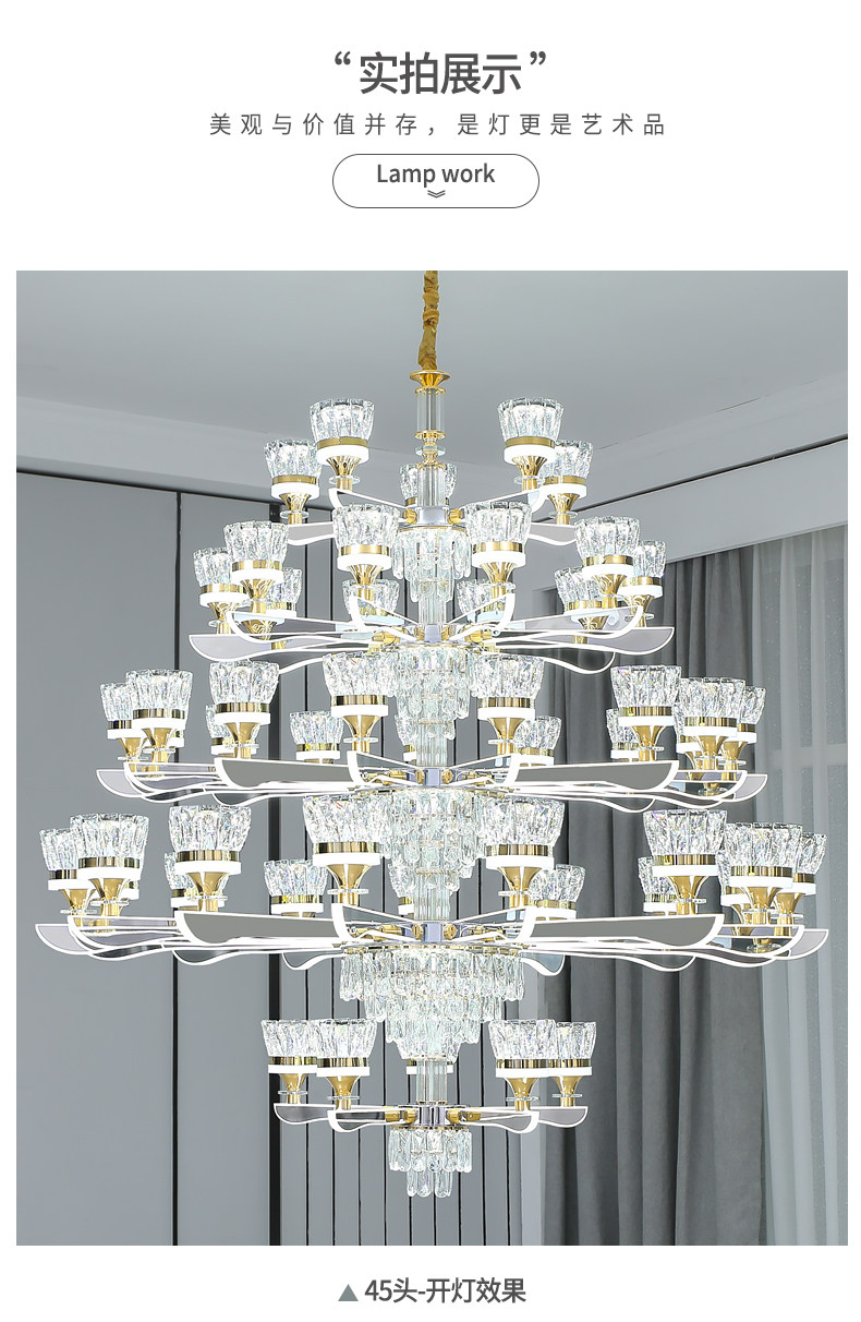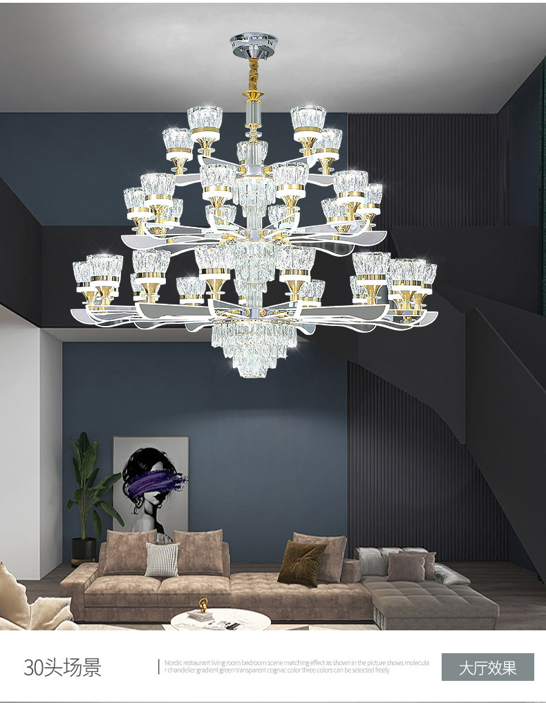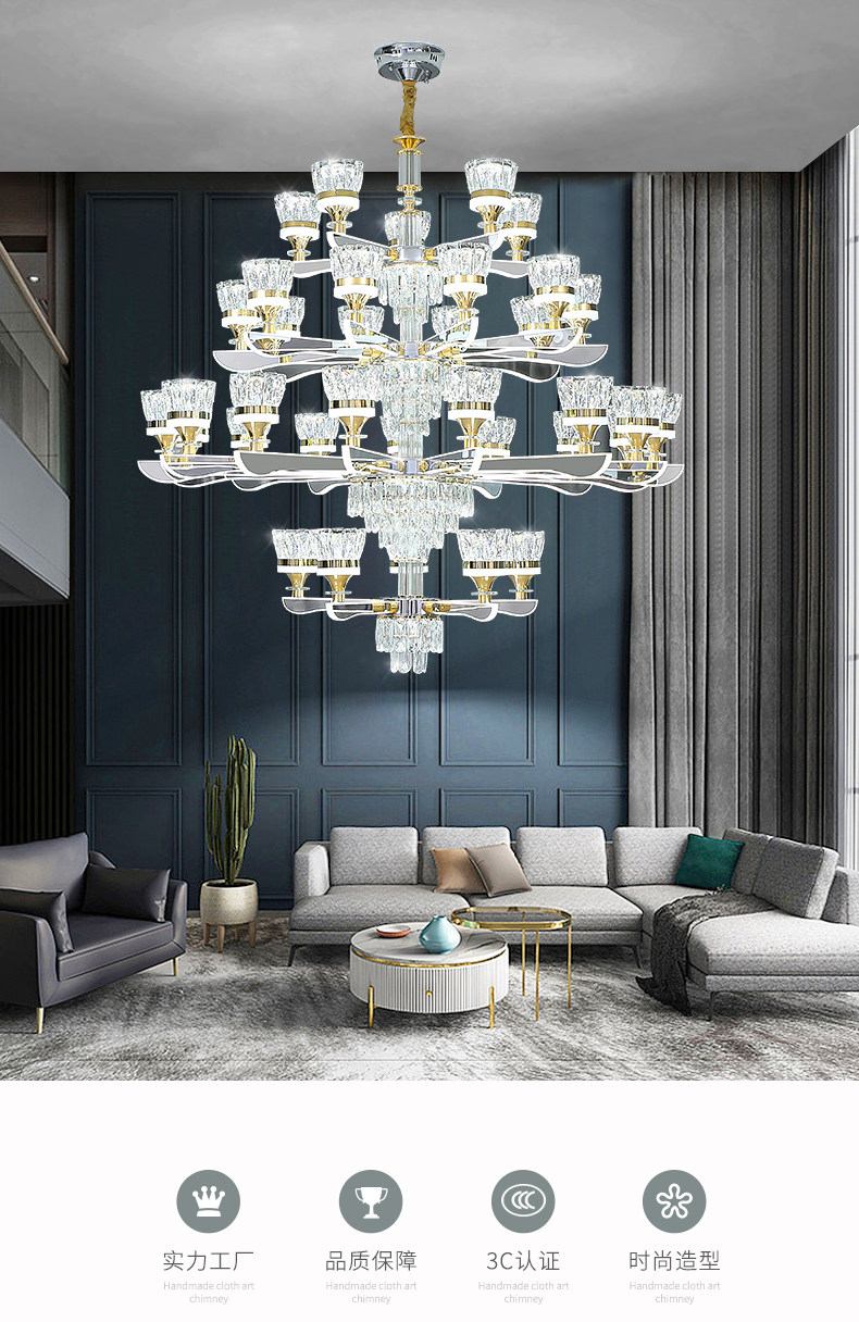 Light Luxury Crystal Living Room Chandelier, Simple and Modern, Nordic Main Light, Villa Lobby Light Arm, Luminous Zhongshan Lighting Fixtures