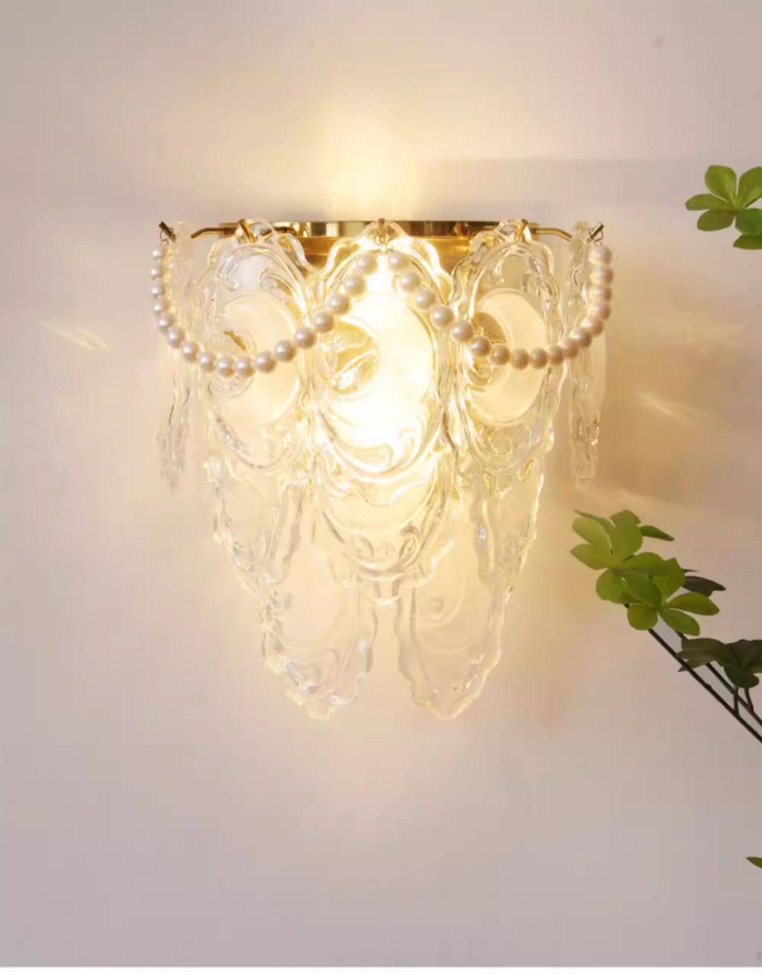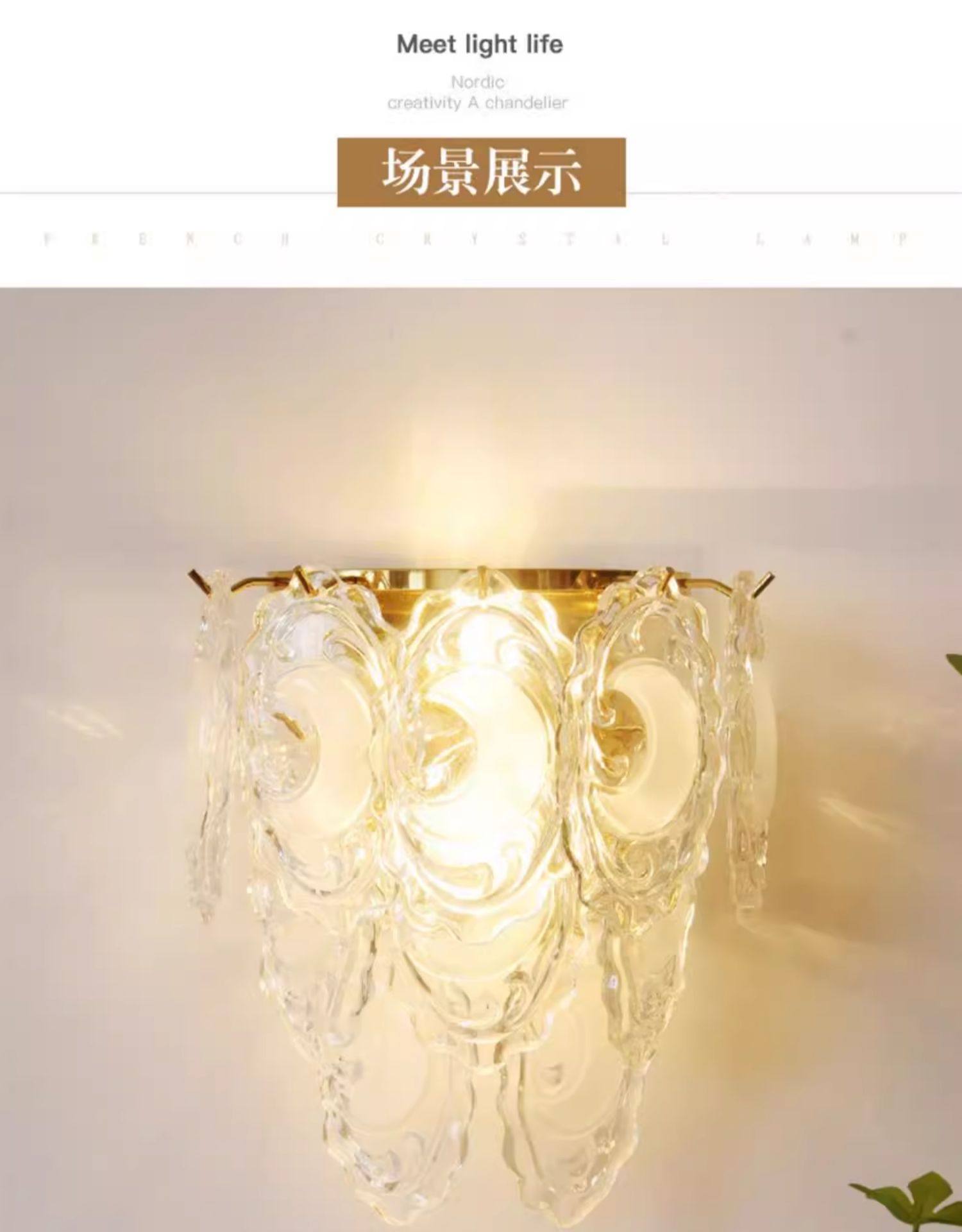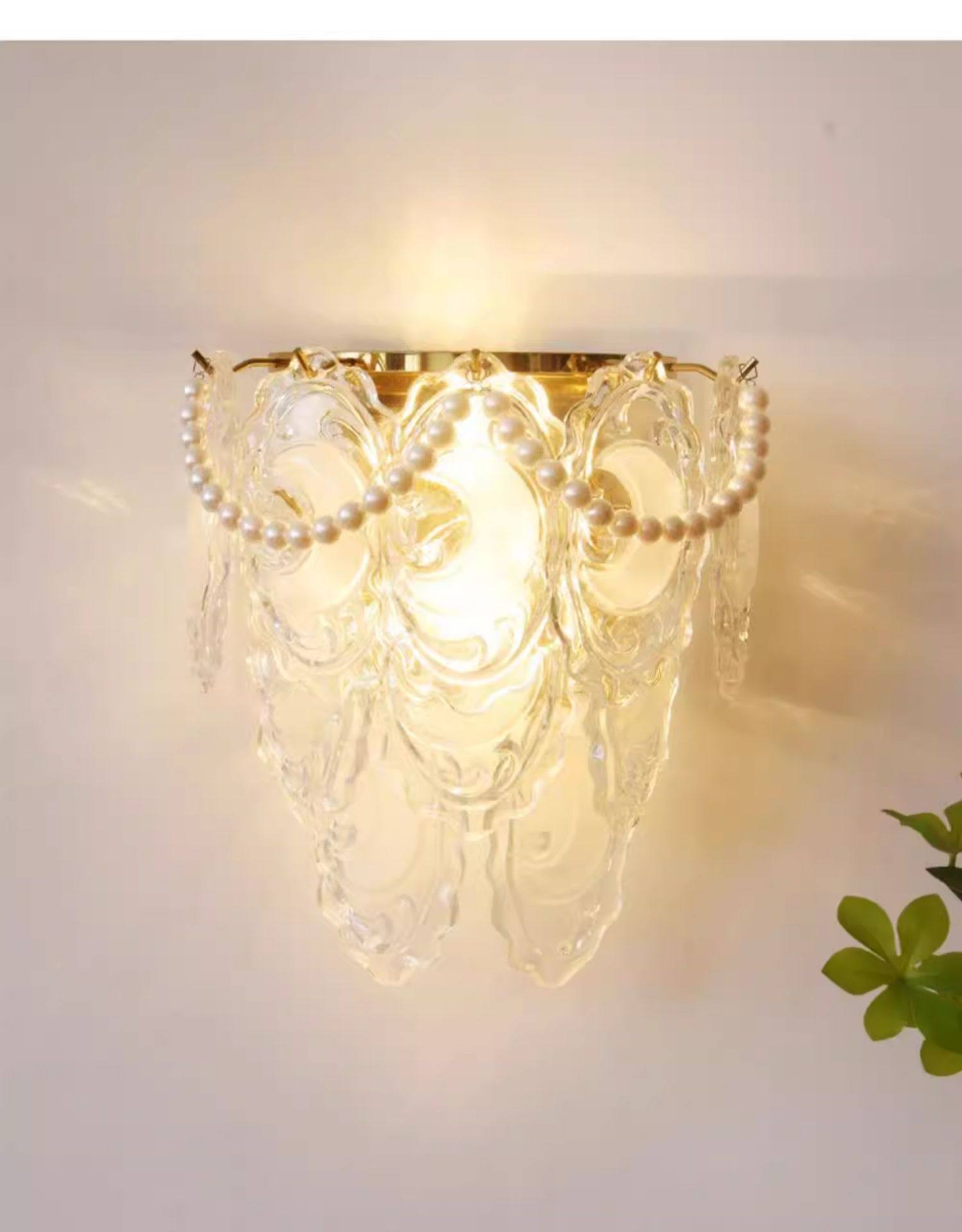 French-Style Light Luxury Crystal Wall Lamp for Living Room Background Wall, Vintage Feather Pearl Dining Room Bedroom Corridor American-Style Bedside Lamp