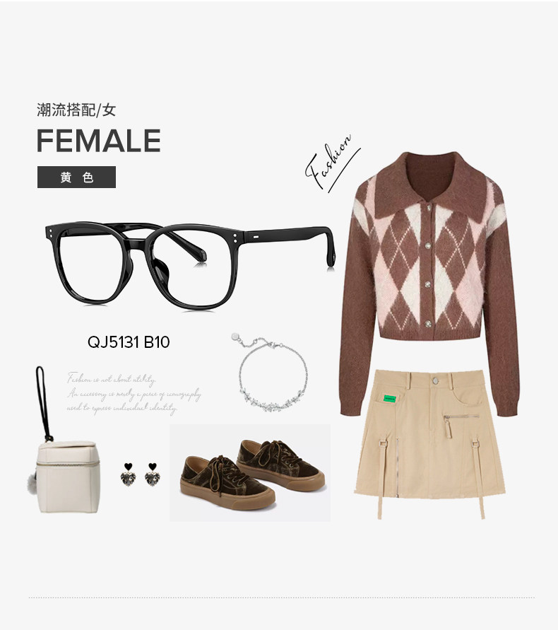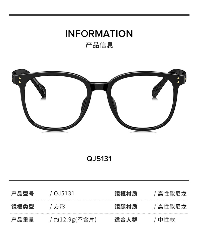 QINA Qina Zhao Lusi's same style new plain black frame trendy frame female myopia glasses male QJ5131