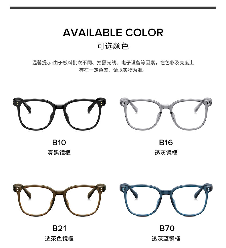Lens refractive index Single frame,0 degree anti-blue light film shipped within 7 days,Shipped within 7 days PROSUN anti-blue light film 1.60,Shipped within 7 days PROSUN anti-blue light film 1.67,Optometry subsidy of 50 yuan. Delivery within 7 days. Delivery within 7 days. PROSUN anti-blue light lenses 1.74 (recommended for medium to high lenses),Shipped within 7 days. Excellent visual quality 1.60 HD (recommended within 600 degrees),Shipped within 7 days. Excellent visual quality 1.67 HD (recommended within 800 degrees),Shipped within 7 days, UVision 1.74 HD (recommended for medium to high resolution),Shipped within 7 days UVis 1.60 anti-blue light (recommended within 600 degrees),Shipped within 7 days UVision 1.67 anti-blue light (recommended within 800 degrees),Shipped within 7 days UVision 1.74 anti-blue light (recommended for medium and high levels),Shipped within 7 days, frame + excellent visual 1.60 (color-changing film, recommended within 600 degrees)
