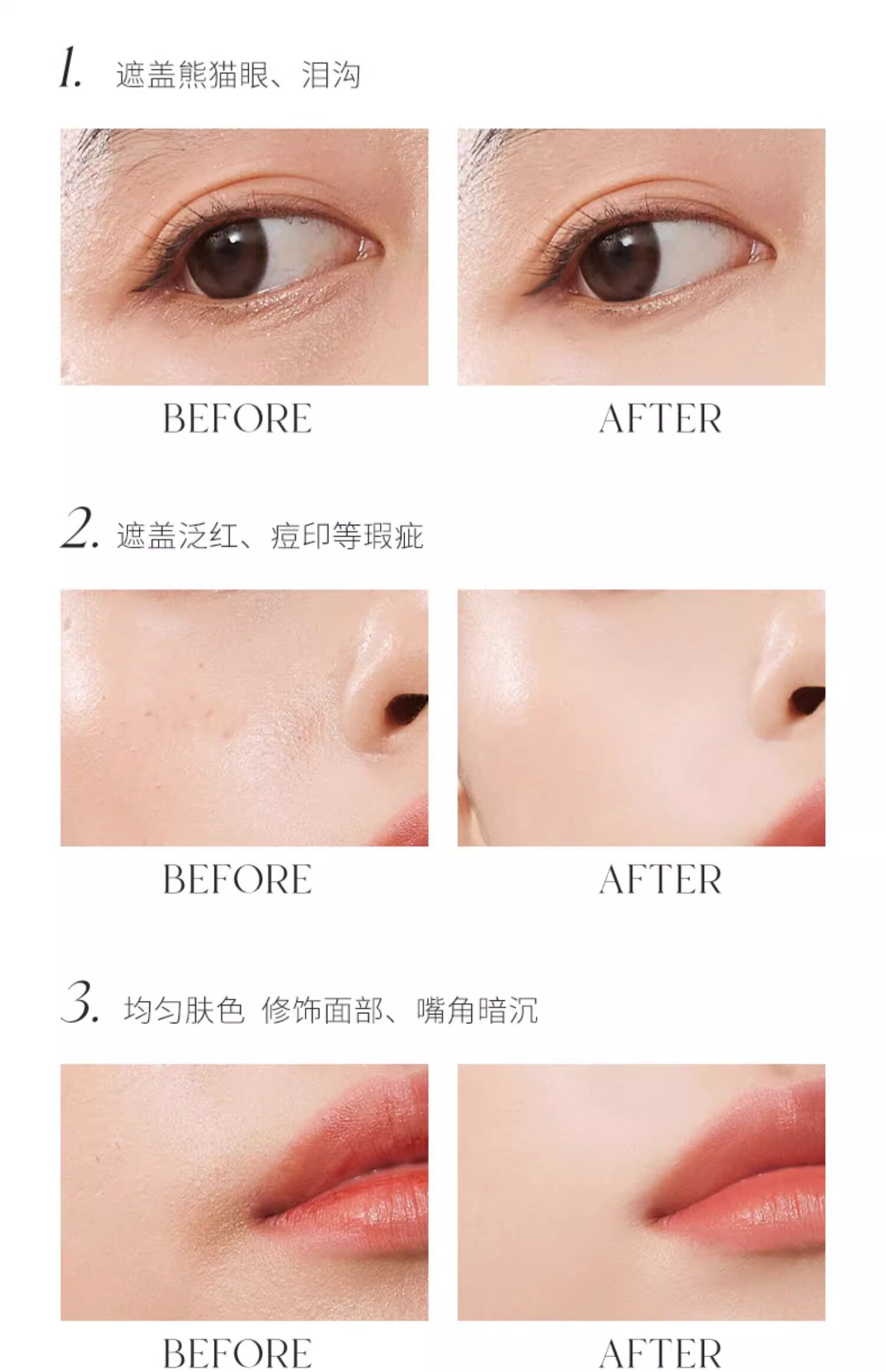 Concealer Area Covers Color Spots, Freckles, Dark Circles, and Acne Marks