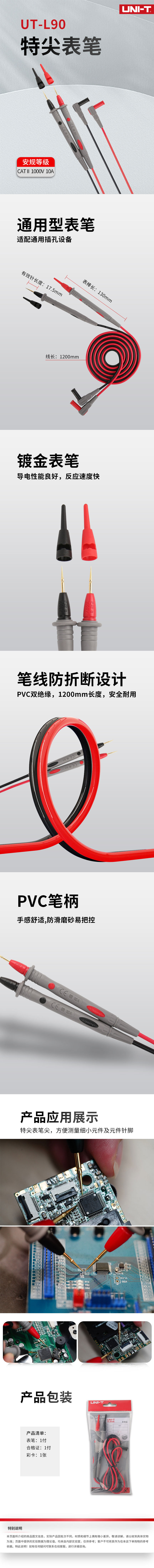 Uliide 10A Gold-Plated Special Tip Test Probe Ut-L90 Universal Multimeter Probe for Measuring Small Components Ic