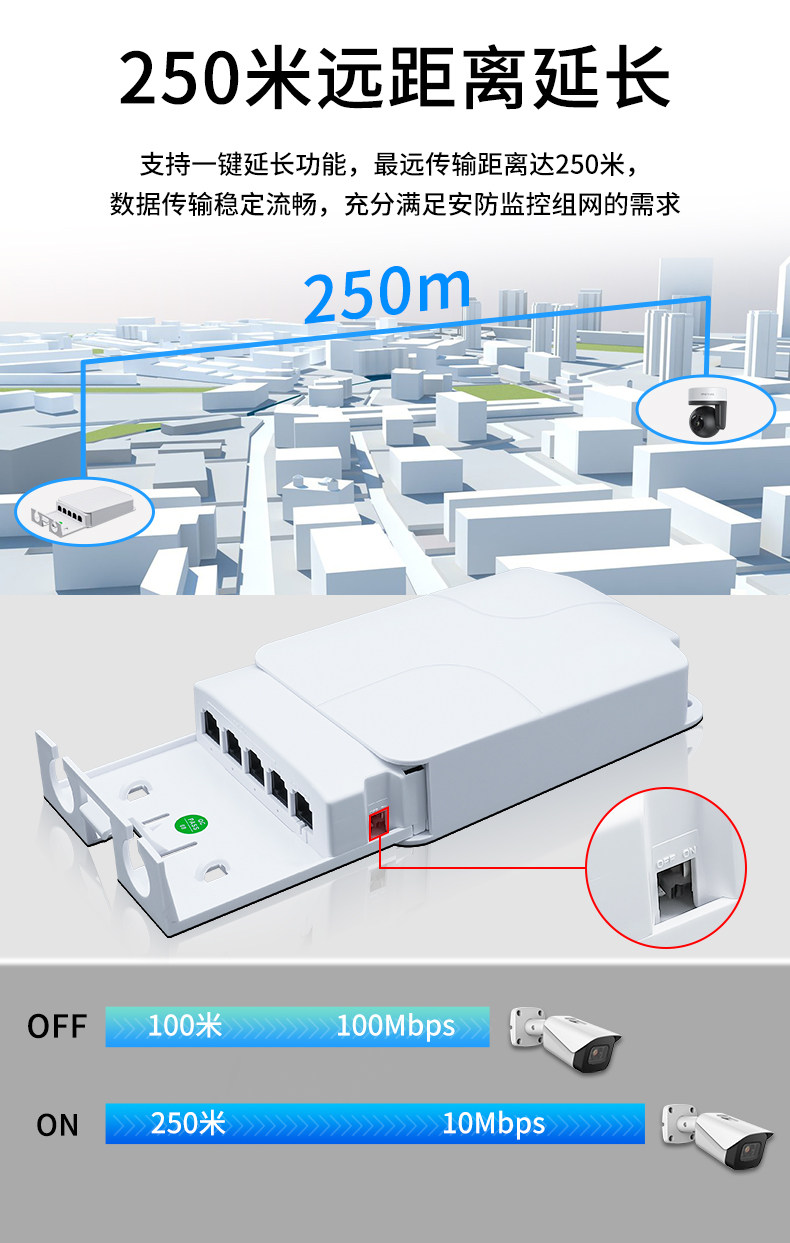 Hongya Vision Poe Extender 1-In-4/1-In-4-Out 100m/1000m Outdoor Waterproof Network Repeater, Dedicated for Surveillance, Standard 48V Poe Power Supply Switch, Cascade Connection
