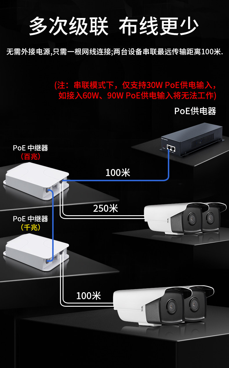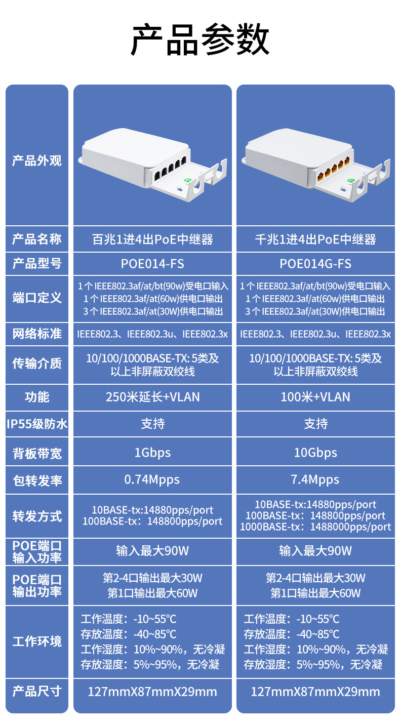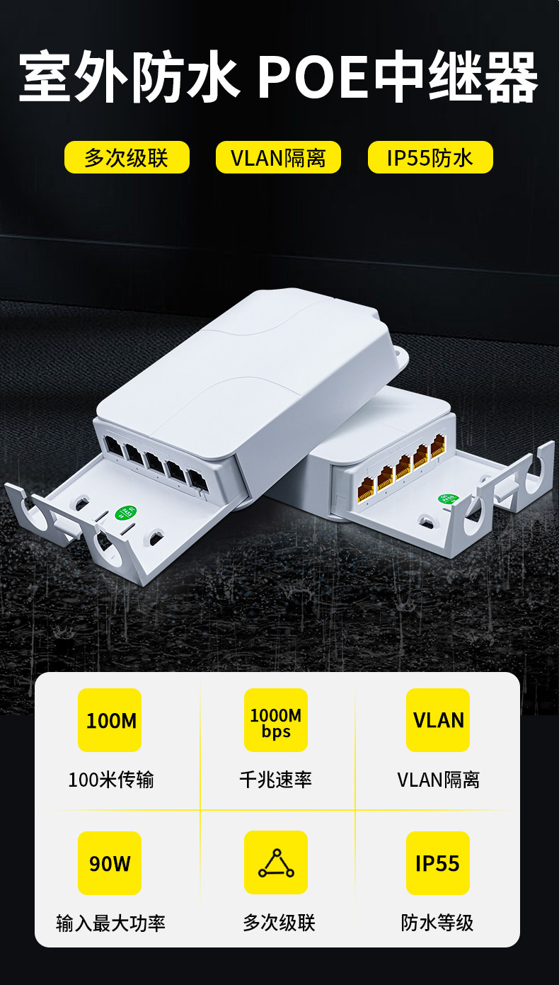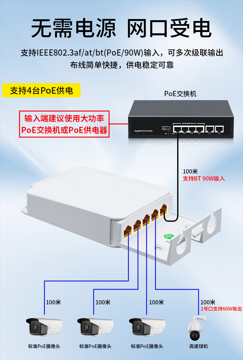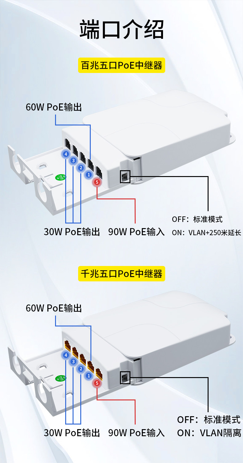Color Classification [Support 90W Input]100Mbps 1 in 4 Out Poe Repeater,[Support 90W Input]Gigabit 1 in and 4 Out Poe Repeater