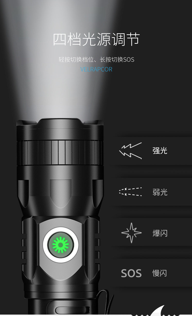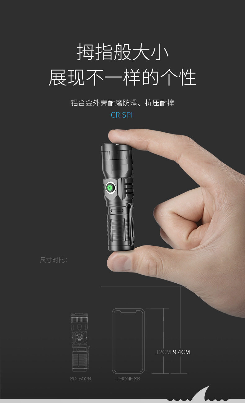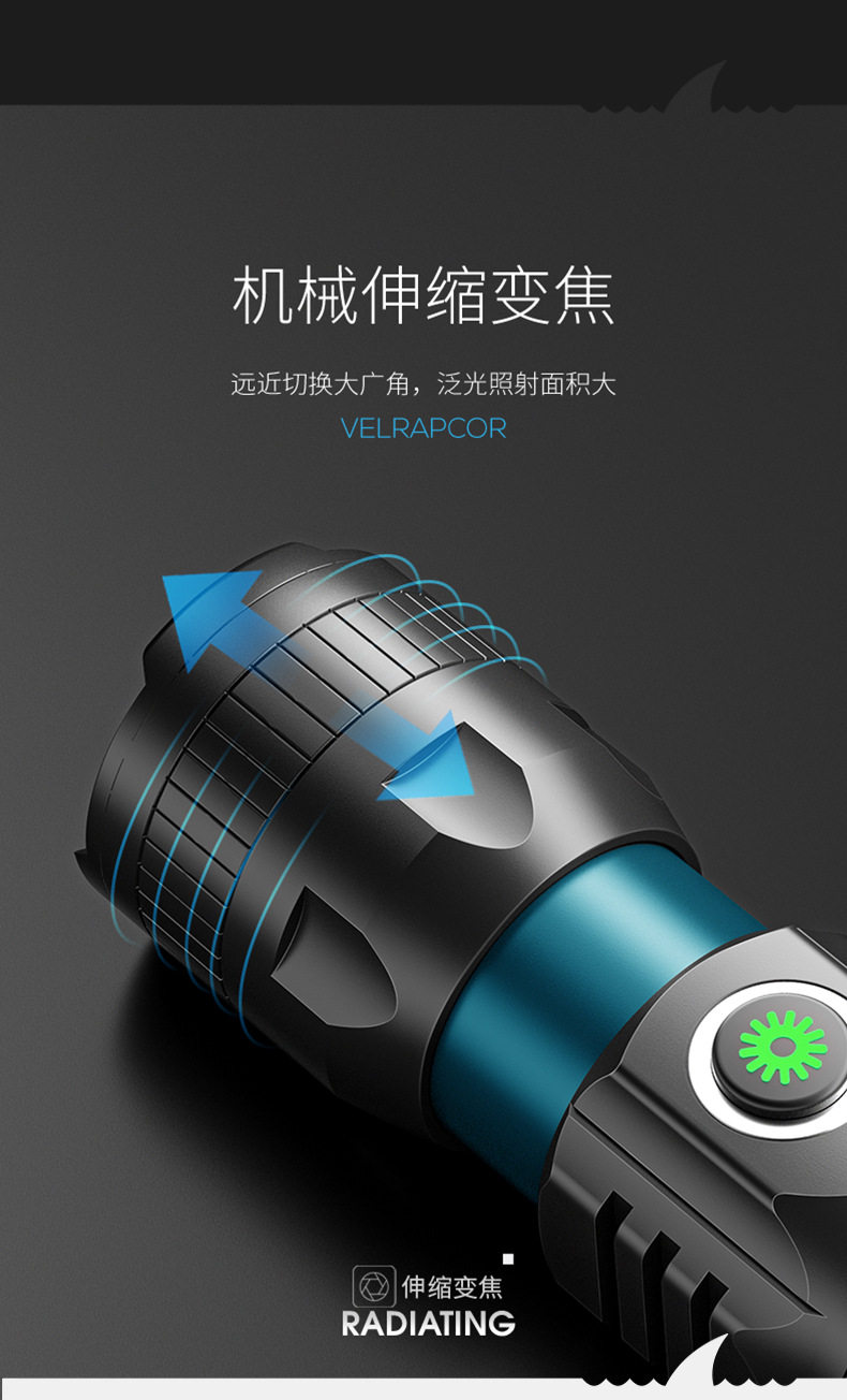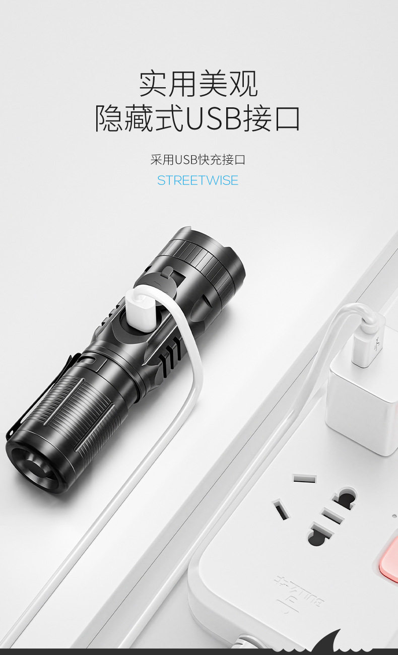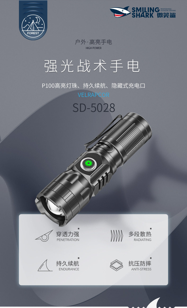 Smile Shark M77 Mini Tactical Flashlight Outdoor Ultra-Bright Telescopic Zoom Convenient Flashlight Aluminum Alloy Led Strong Light