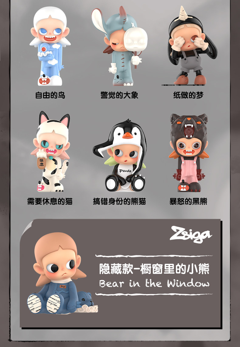 Style description Brand new and unopened single random blind box,Angry black bear,trapped frog,Ugly duckling,rich bear,Panda with mistaken identity,alert elephant,The wolf cub that slipped out,stray rabbit,bored puppy,cat needs rest,The free bird,paper dream,Hidden style - bear in the window,Twelve basic models unboxed and unpacked,Brand new and unopened in a plastic box (highly likely to be hidden)