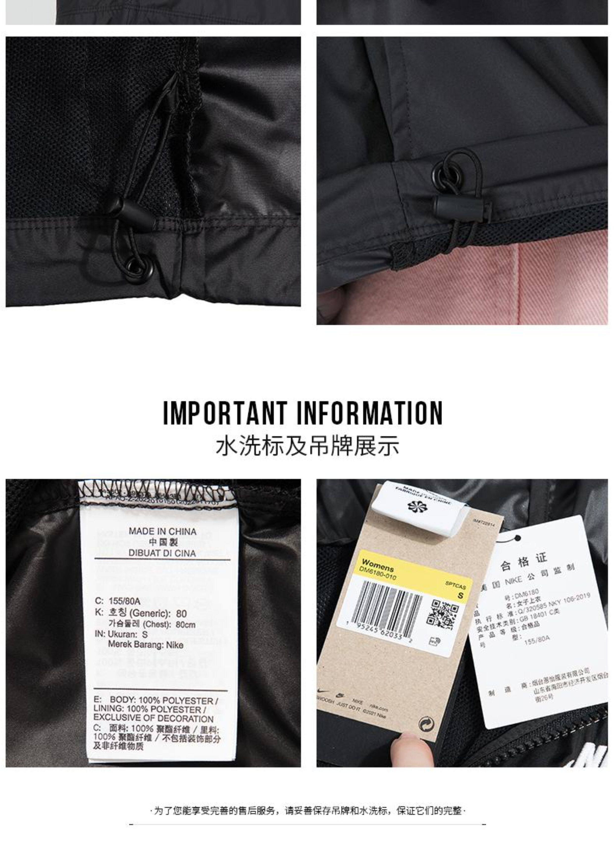 Autumn 2023 Authentic Nike Sports Jacket Casual Women's Windproof Hooded Jacket DM6180-010-113