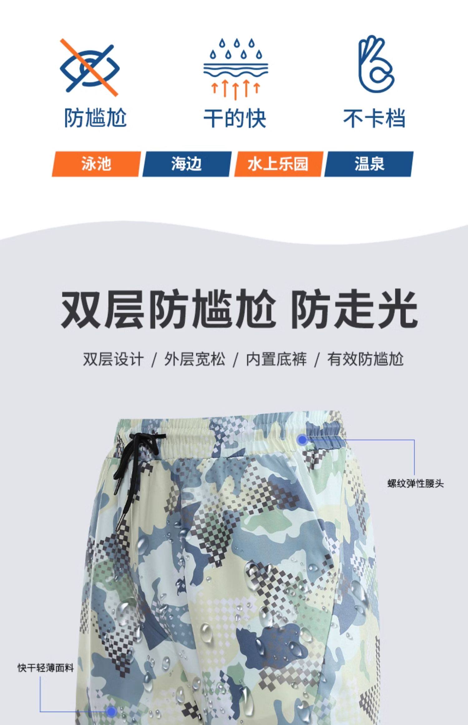 Swimsuit Set for Men and Teenagers, Loose-Fitting, Quick-Drying, Hot Spring Vest, Double-Layer Lining, Anti-Embarrassment Swimming Trunks, Beach Swimming Cap
