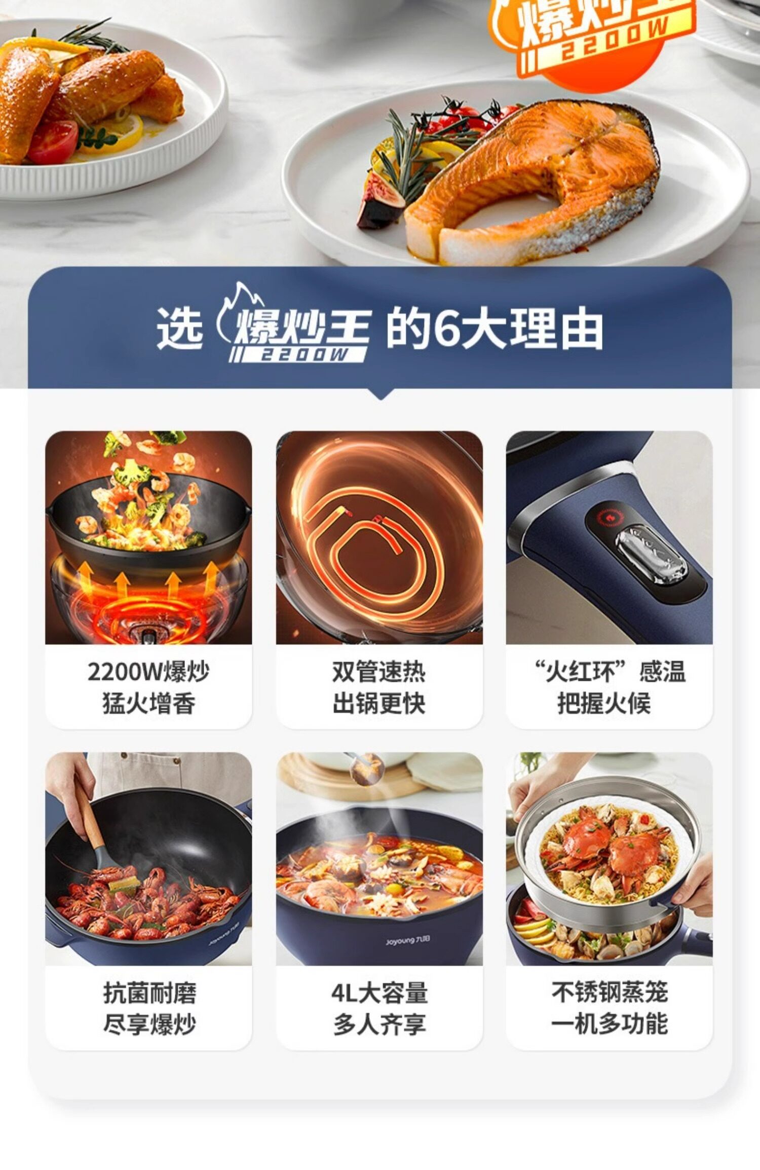 Joyoung electric wok household multi-function electric wok integrated electric wok steamed frying electric hot pot non-stick pot