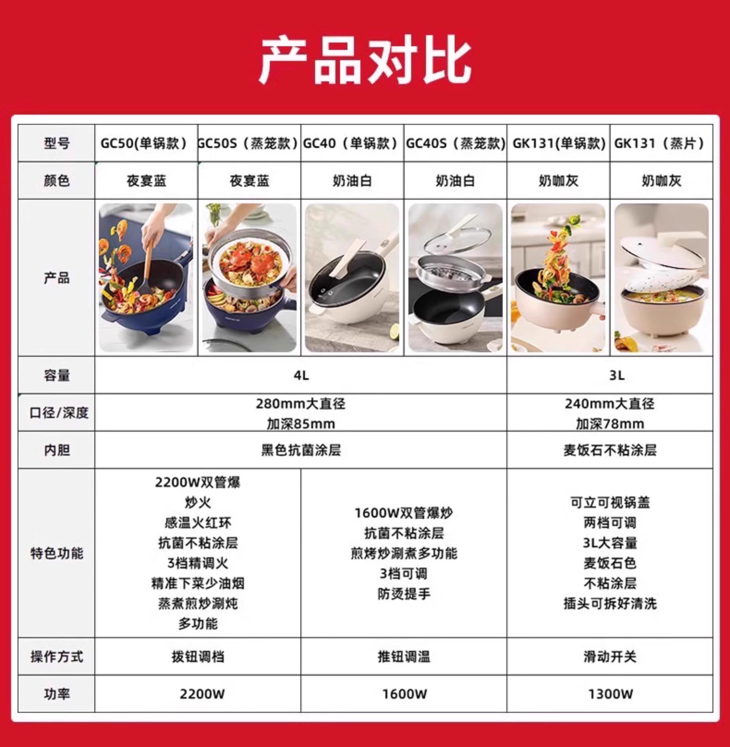 Sort by color Night Banquet Blue 4L Single Pot Model,Night banquet blue 4L steamer style,Cream White 4L Single Pot Model,Cream white 4L steamer style,Yuanhang Gray 5L Single Pot Model,Yuanhang gray 5L steamer style