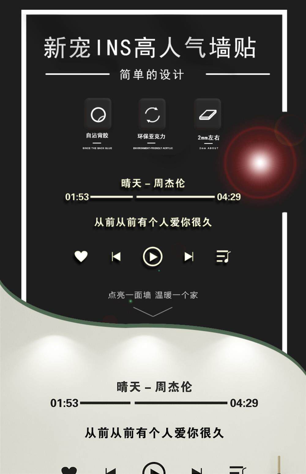 Ins style Jay Chou Sunny Lyrics Wall Sticker 3D Stereo Sticker Acrylic Dormitory Bedroom Layout Decoration Sticker