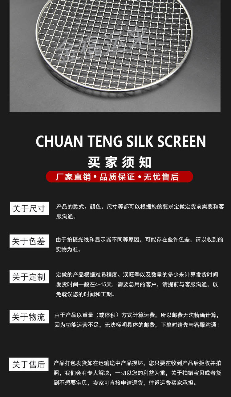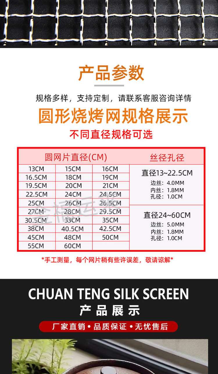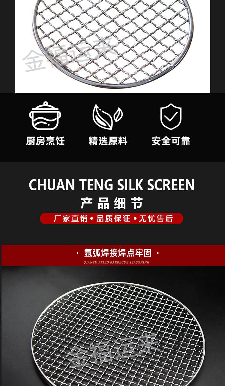 Stainless steel round barbecue mesh, square mesh, drain rack, grate curtain, barbecue mesh, stew pot bottom pad, oven grill mesh
