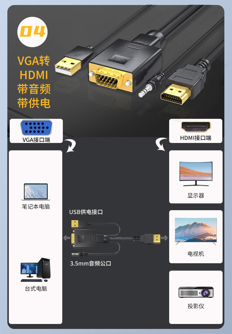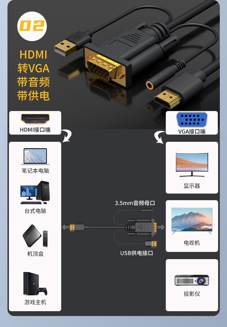 Color Classification 1m HDMI to Vga Hd Conversion Cable★No Audio and No Power Supply,2m HDMI to Vga Hd Conversion Cable★No Audio and No Power Supply,3m HDMI to Vga Hd Conversion Cable★No Audio and No Power Supply,5m HDMI to Vga Hd Conversion Cable ★ No Audio and No Power Supply